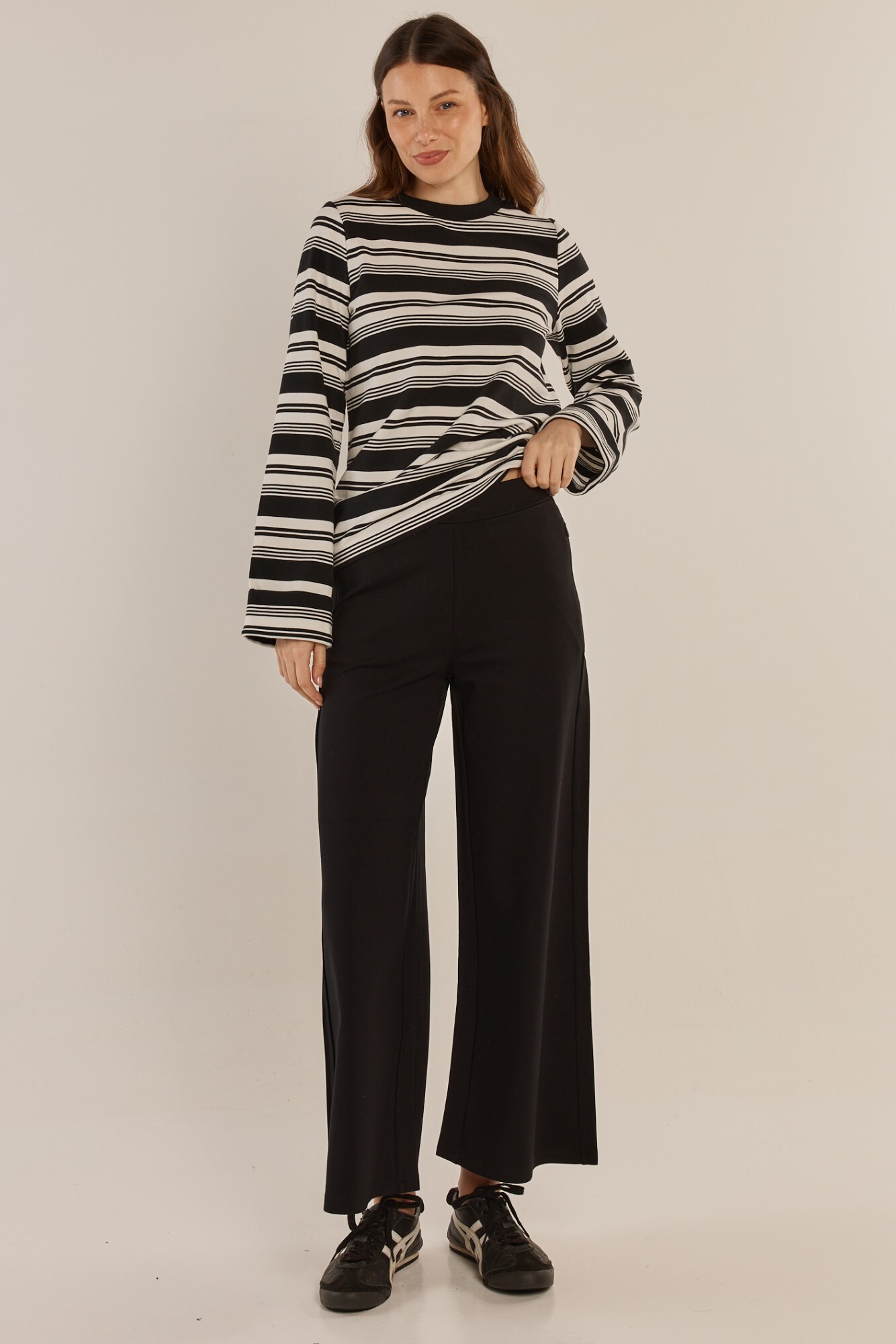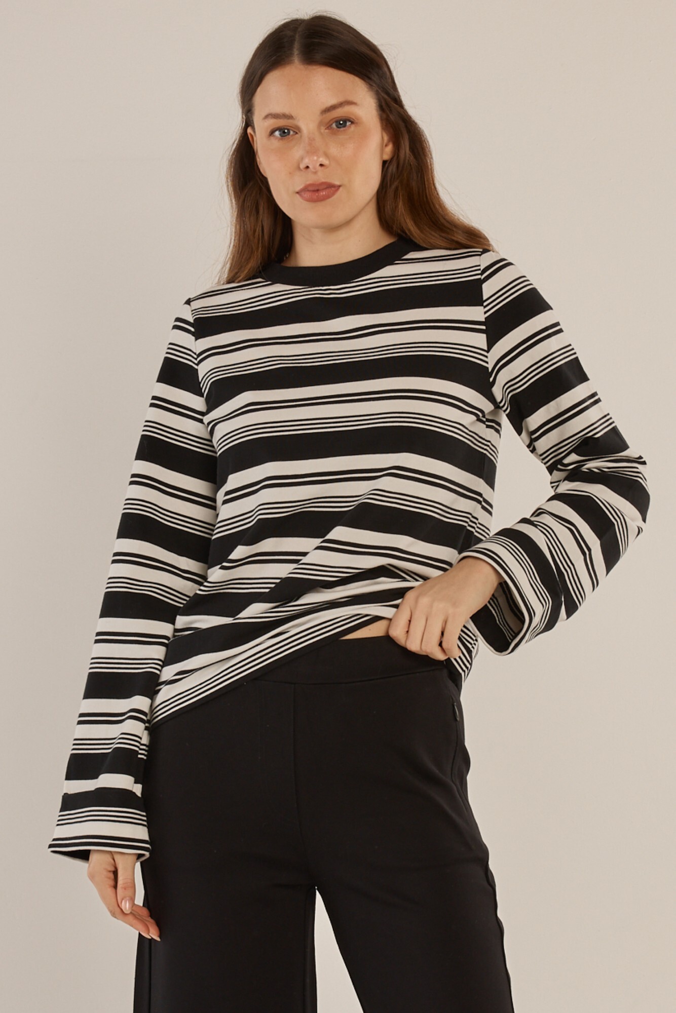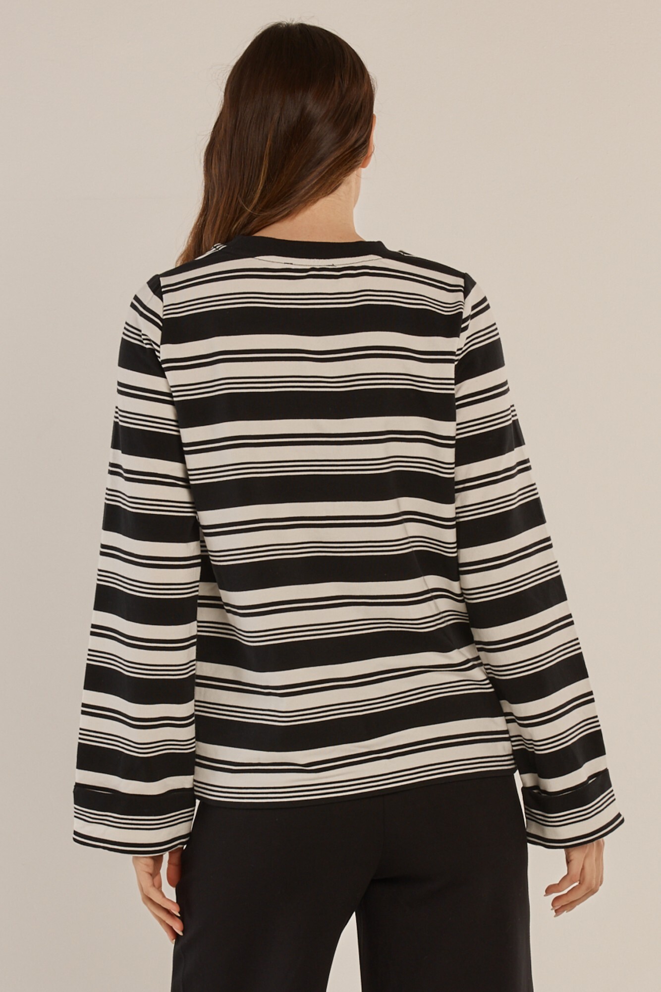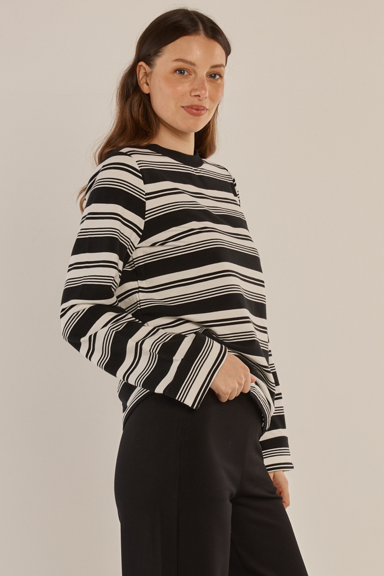 The Arden Top is a comfortable essential with an elevated striped finish. Made from soft stretch fabrication, it features an all-over stripe and classic neckline detail. The relaxed silhouette makes it effortless to style for everyday wear. A trans-seasonal staple designed for easy mix-and-match dressing.