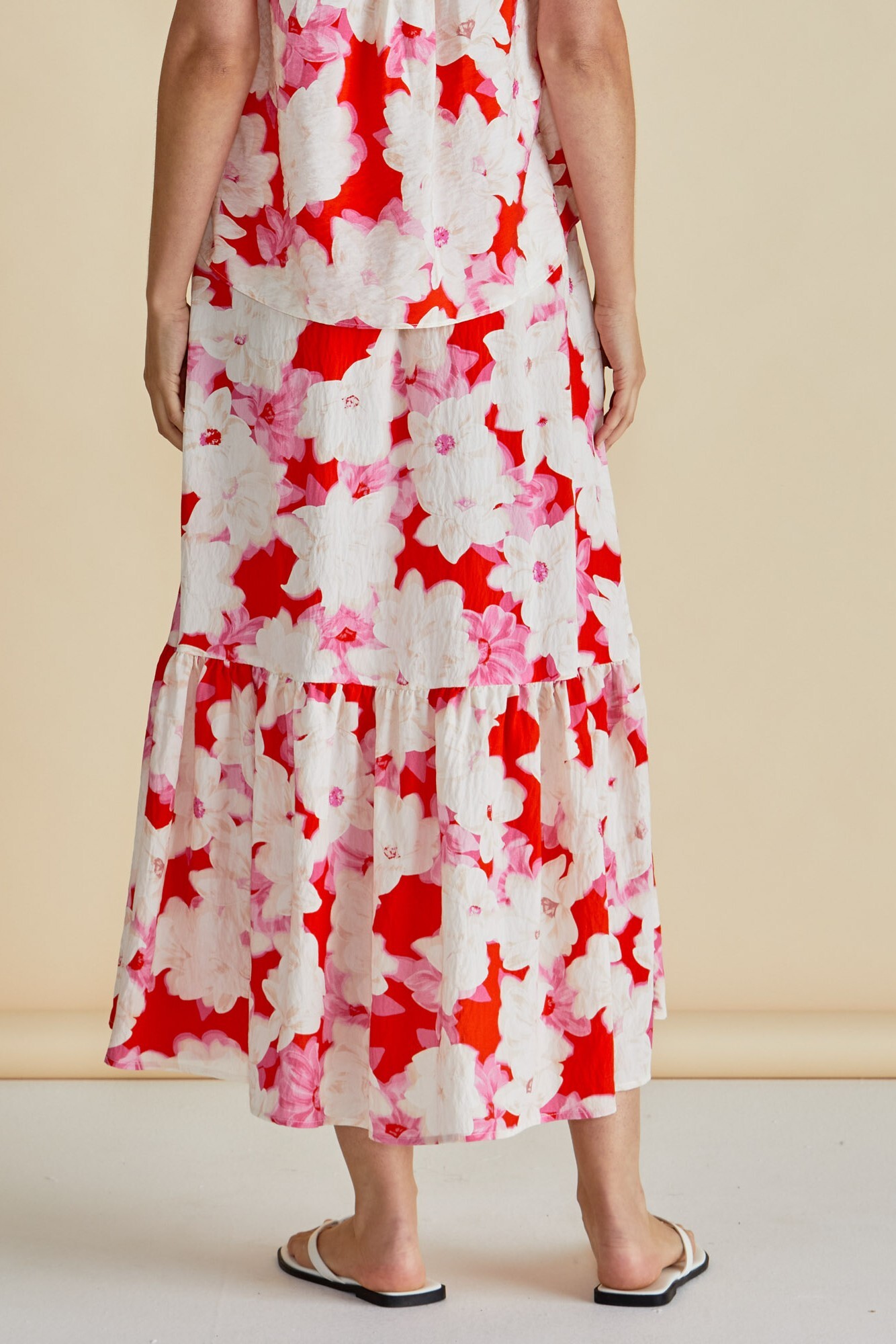The Maggie Skirt is an effortless blend of comfort and style. Designed with an elasticated waistband, tiered hem and pockets, it offers a relaxed, feminine silhouette. The high-low hemline adds movement and shape, making it easy to wear across seasons. A classic, elevated piece that transitions seamlessly from day to night.