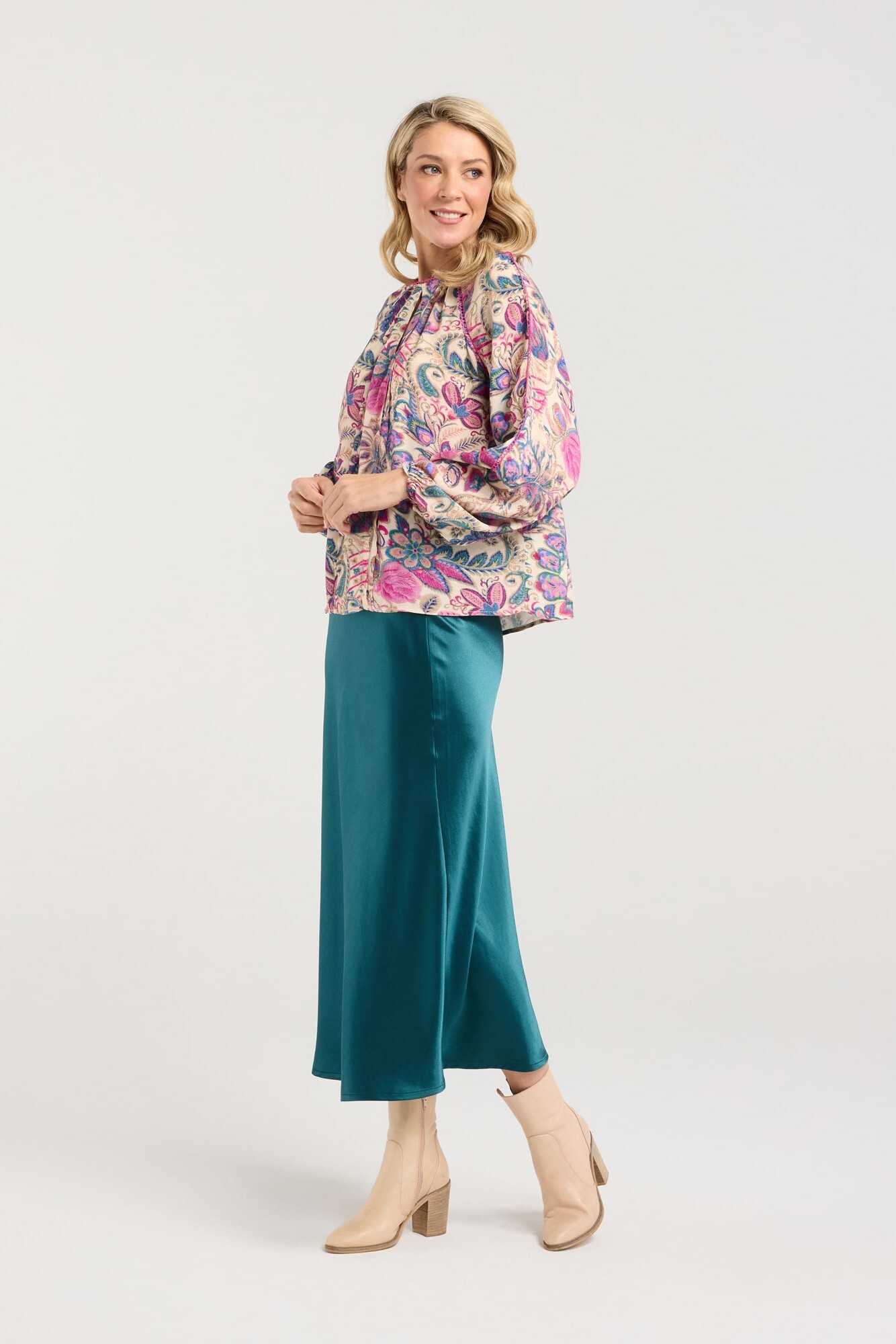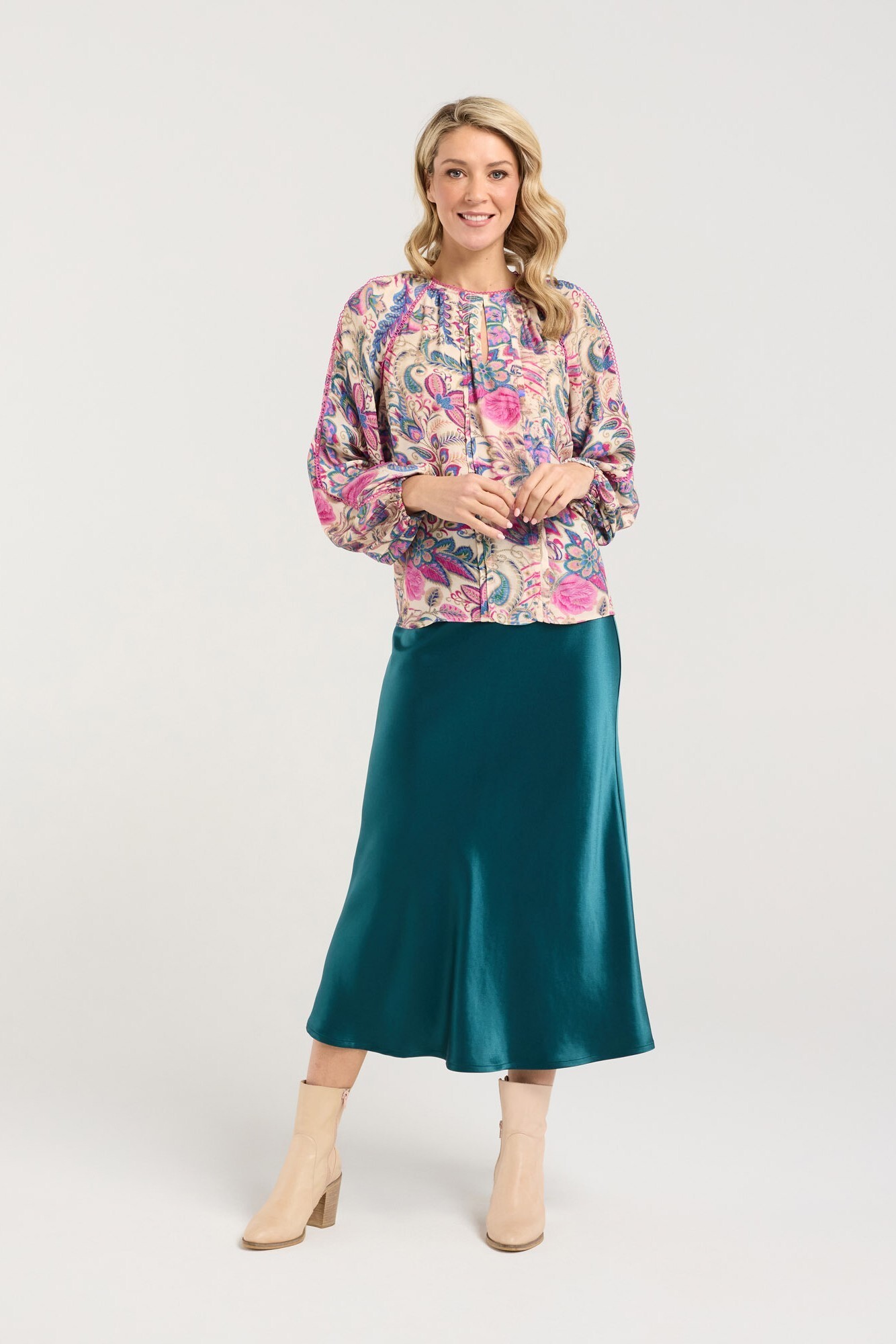 Update your winter wardrobe with the Peggy Lace Trim Raglan Top by Blackstone. With its beautiful feminine print and lace detailing this top is a unique blend of style and comfort, seamlessly taking you from work to an evening out. Crafted from viscose crepe to provide a soft feel while maintaining breathability, this top will be on high rotation this season. Features: 100% Viscose Crepe fabric; Delicate lace trim detailing; Keyhole front neckline with button and loop closure at back neck; Elasticated sleeve hems. Model is 179cm tall and is wearing a size 8