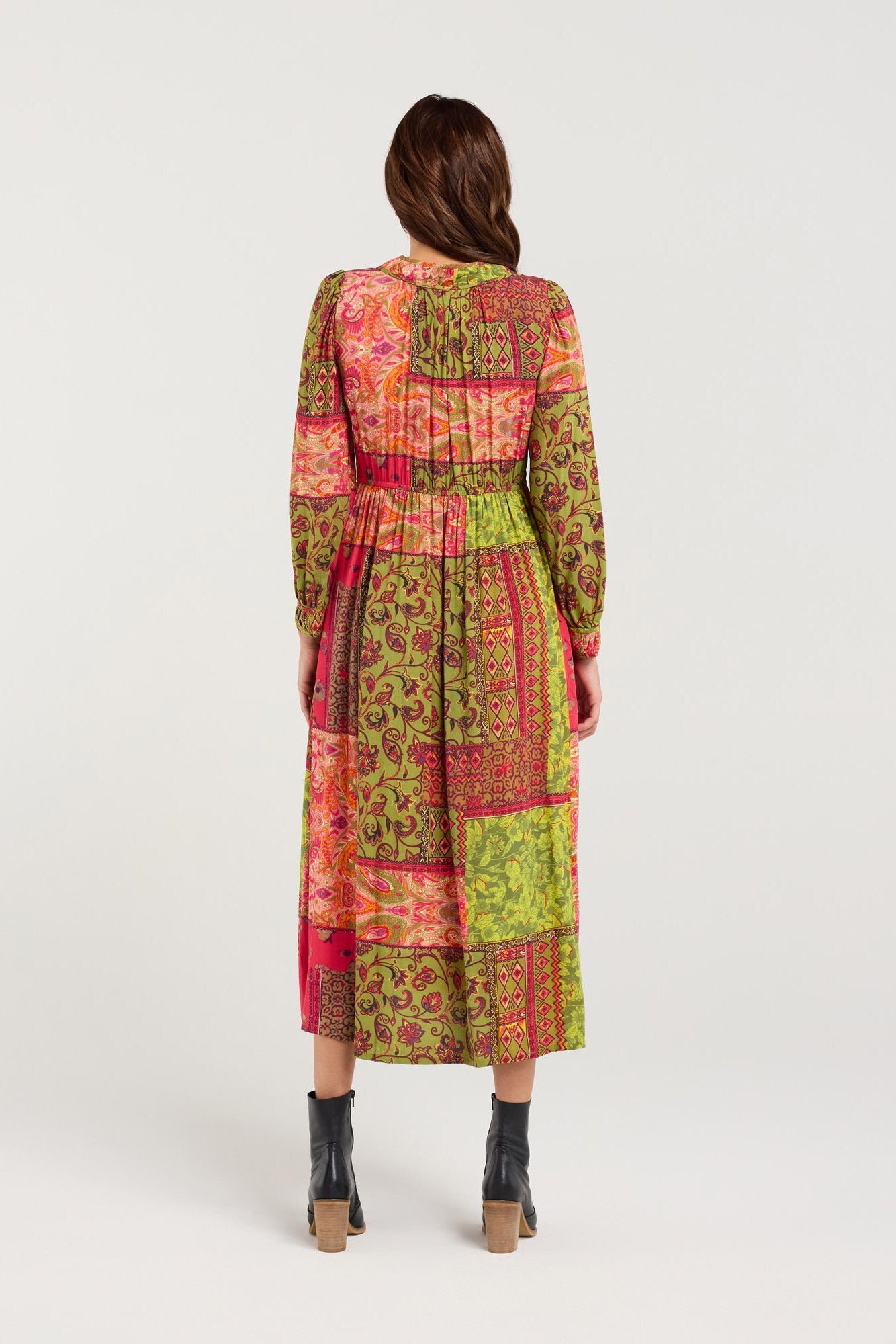 The Rosie Gathered V-neck Dress from Blackstone feels effortlessly feminine with its gathered neck detail and soft fabric. Made from a beautiful rayon this dress is lightweight drapey and ready to become a go-to in your wardrobe this season. Worn with tights and boots for a dressier look or with sneakers for a busy day around town the options are endless. Features: 100% Rayon Gathered neckline and cuff detail; Elasticated back waistline; Side seam pockets. Model is 178cms tall and is wearing a size 8 100% Rayon