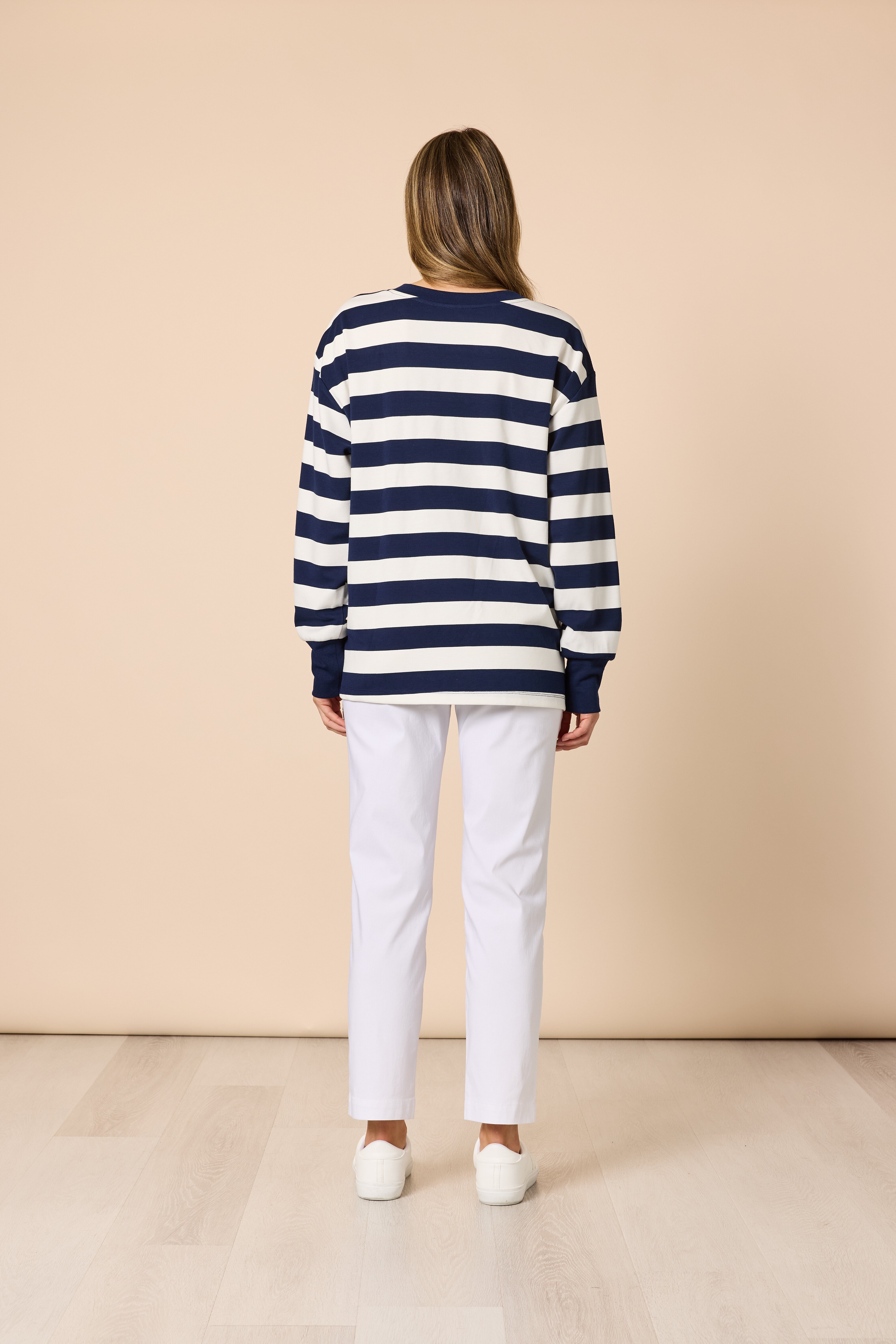 Features:• The Riviera Sequin Stripe Sweatshirt brings a touch of sparkle to a classic casual style. Designed with bold horizontal stripes and elevated with shimmering sequin detailing across the front, it combines relaxed comfort with subtle sophistication.• Crafted in a soft, smooth fabric with a quality feel, this sweatshirt features a crew neckline, long sleeves, and ribbed cuffs and hem for a neat, structured finish.• Perfect for weekend wear or travel days, it’s an easy piece to dress up or down for effortless everyday style.