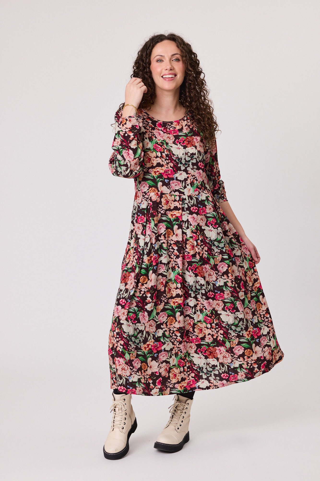 The Toulon Printed Dress brings effortless movement and soft femininity to your wardrobe. Designed in a 100% viscose fabric, this calf-length dress drapes beautifully while allowing the skin to breathe. Featuring loose 3/4 sleeves and a flattering A-line shape.The exclusive print adds interest without overwhelming, making it an easy go-to for relaxed yet polished dressing.