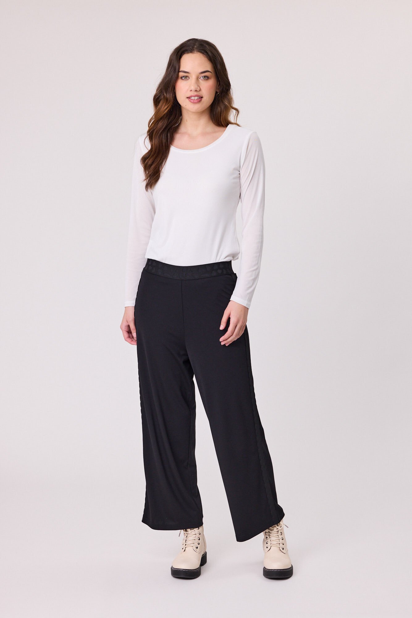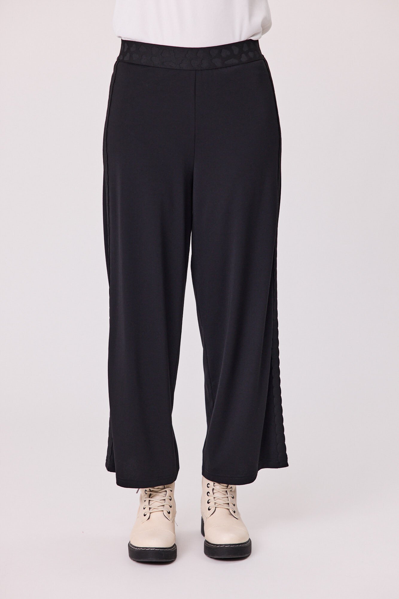 The Donna Palazzo Pant offers comfort with a modern edge. Featuring a flowing palazzo silhouette, side trim detailing and a heart-motif elasticated waistband, it blends feminine softness with subtle sporty detail.