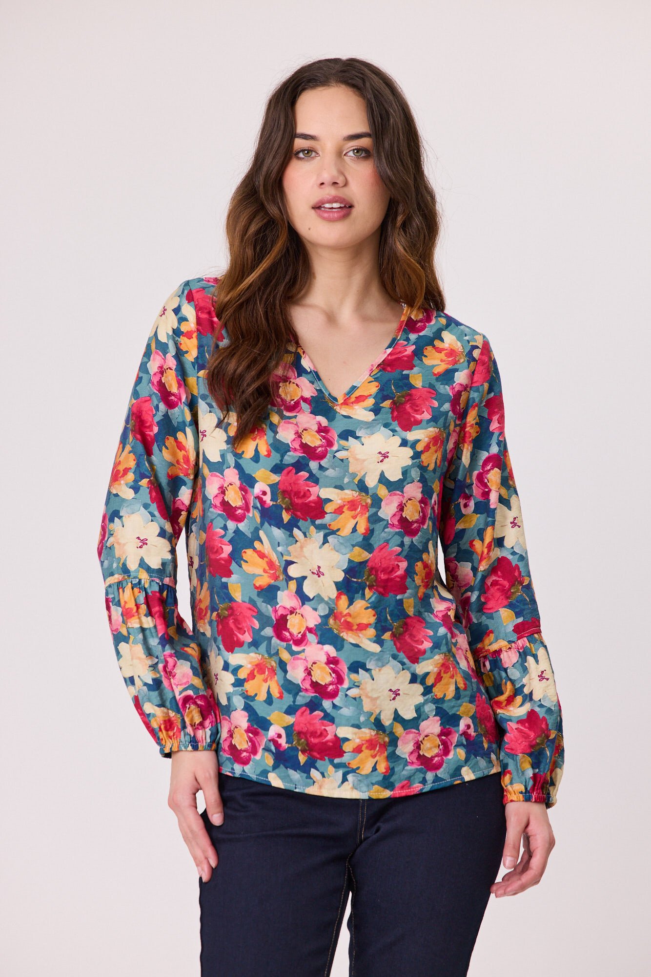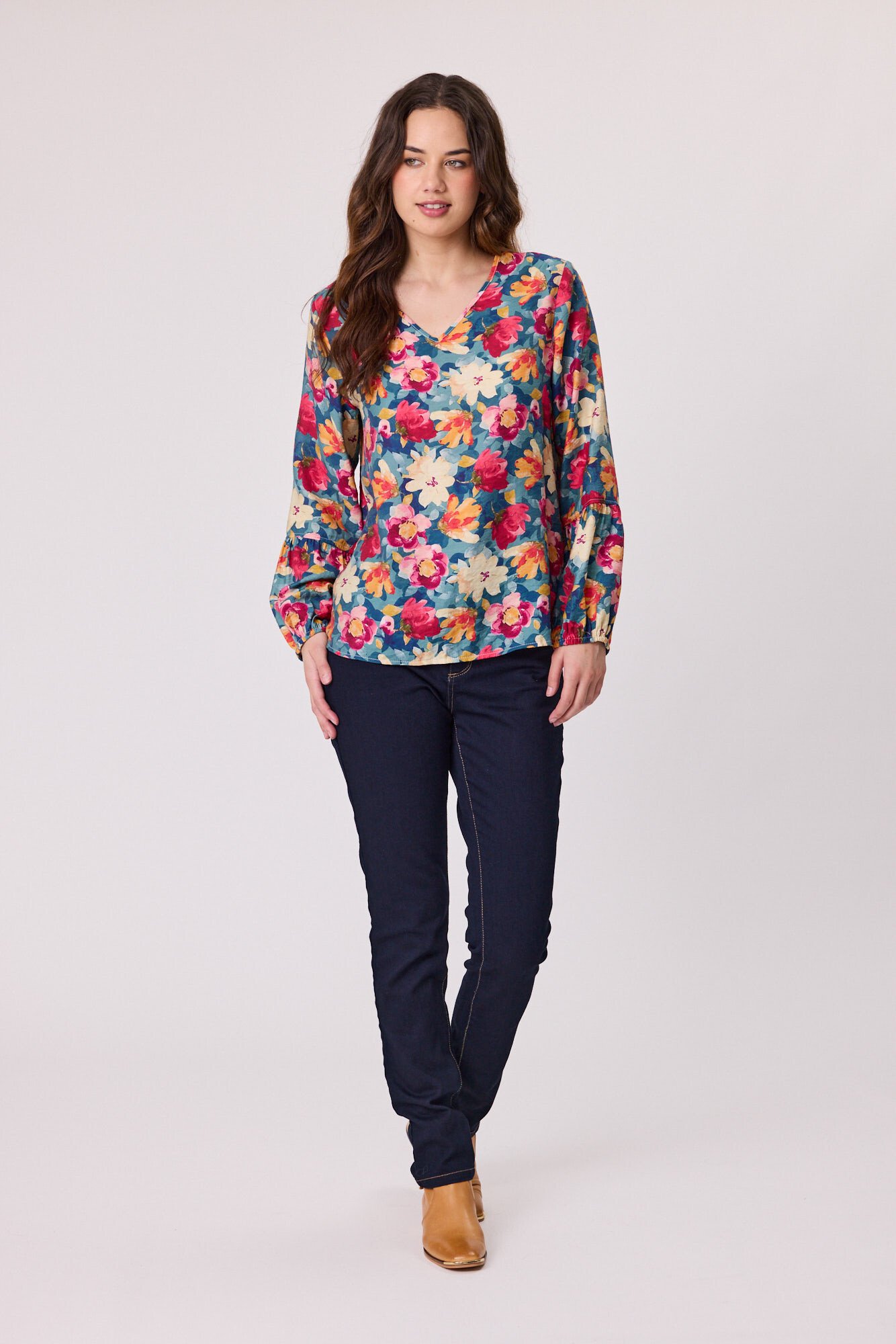 The Indie V Neck Blouse is a classic shape with practical detailing. Designed with a flattering V neck, 3/4 sleeves and elasticated cuffs, it balances ease and polish.