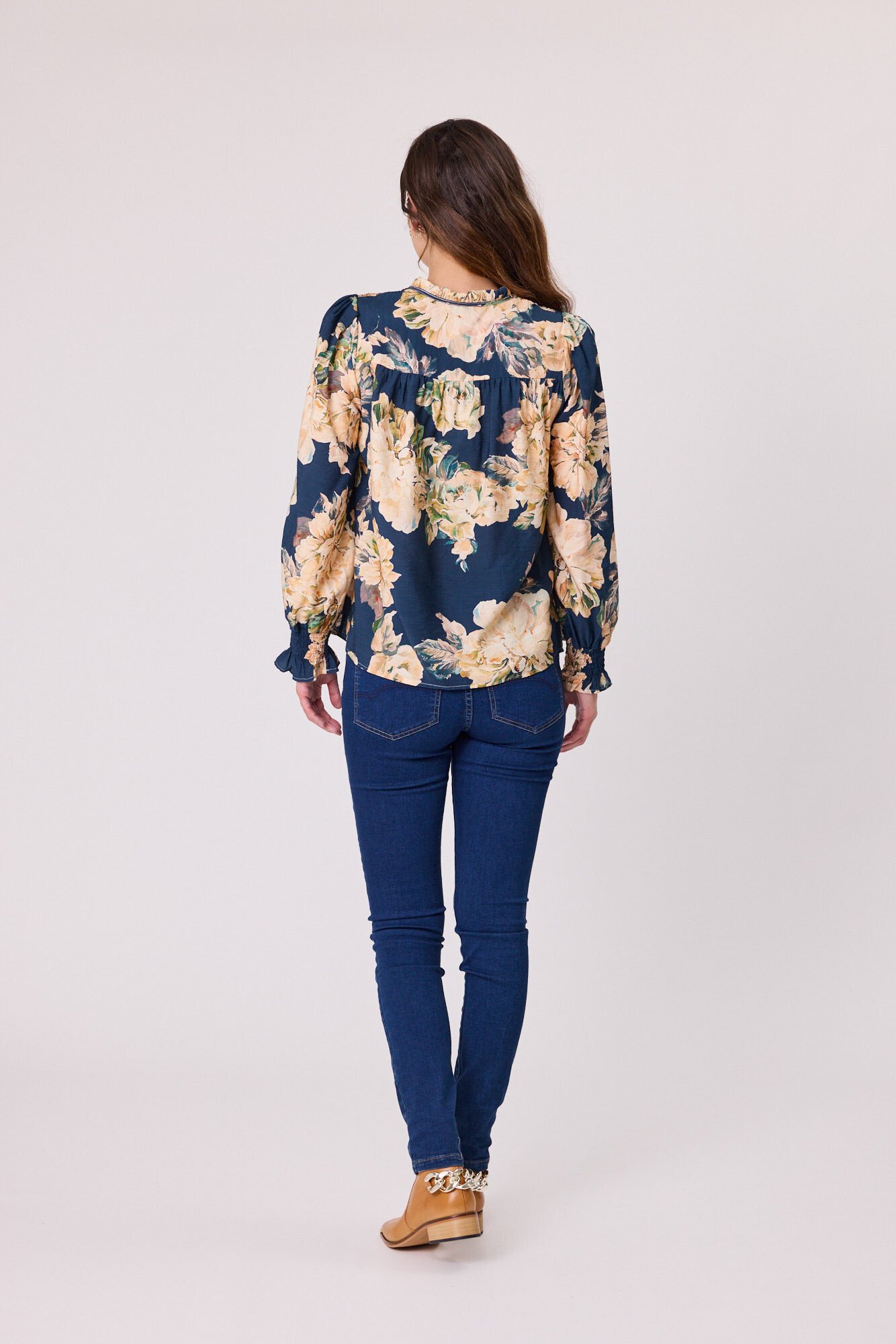 The Rose Peasant Top offers a soft, romantic silhouette with everyday wearability. Designed with a ruched shoulder and ruffle neckline, it brings gentle movement and subtle detail without feeling fussy.