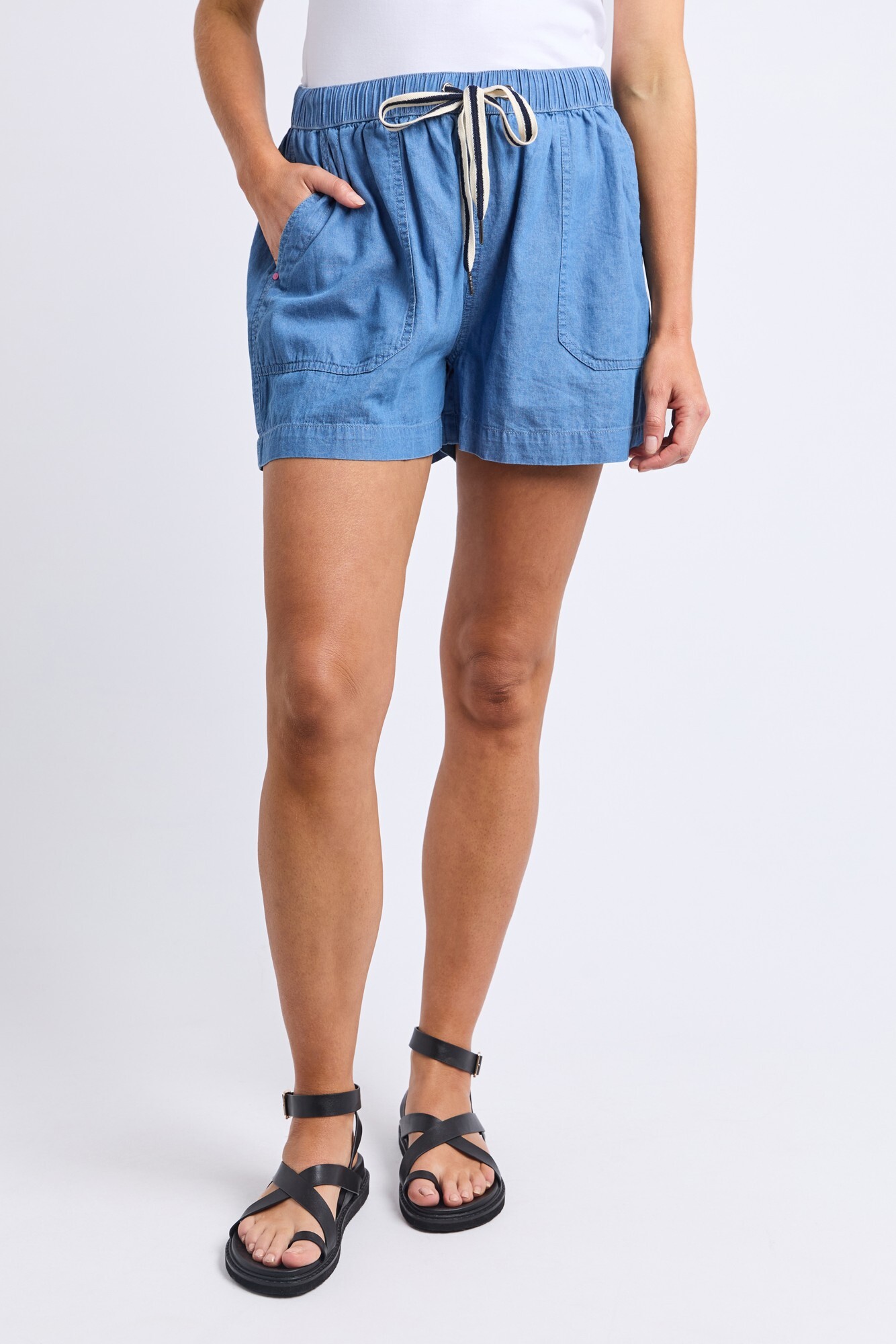 Soft, cool and flattering the new relaxed Elliot Chambray Short is a great throw-on-and-go option for every wardrobe. 100% Cotton Model is 171cm and wears Size 10