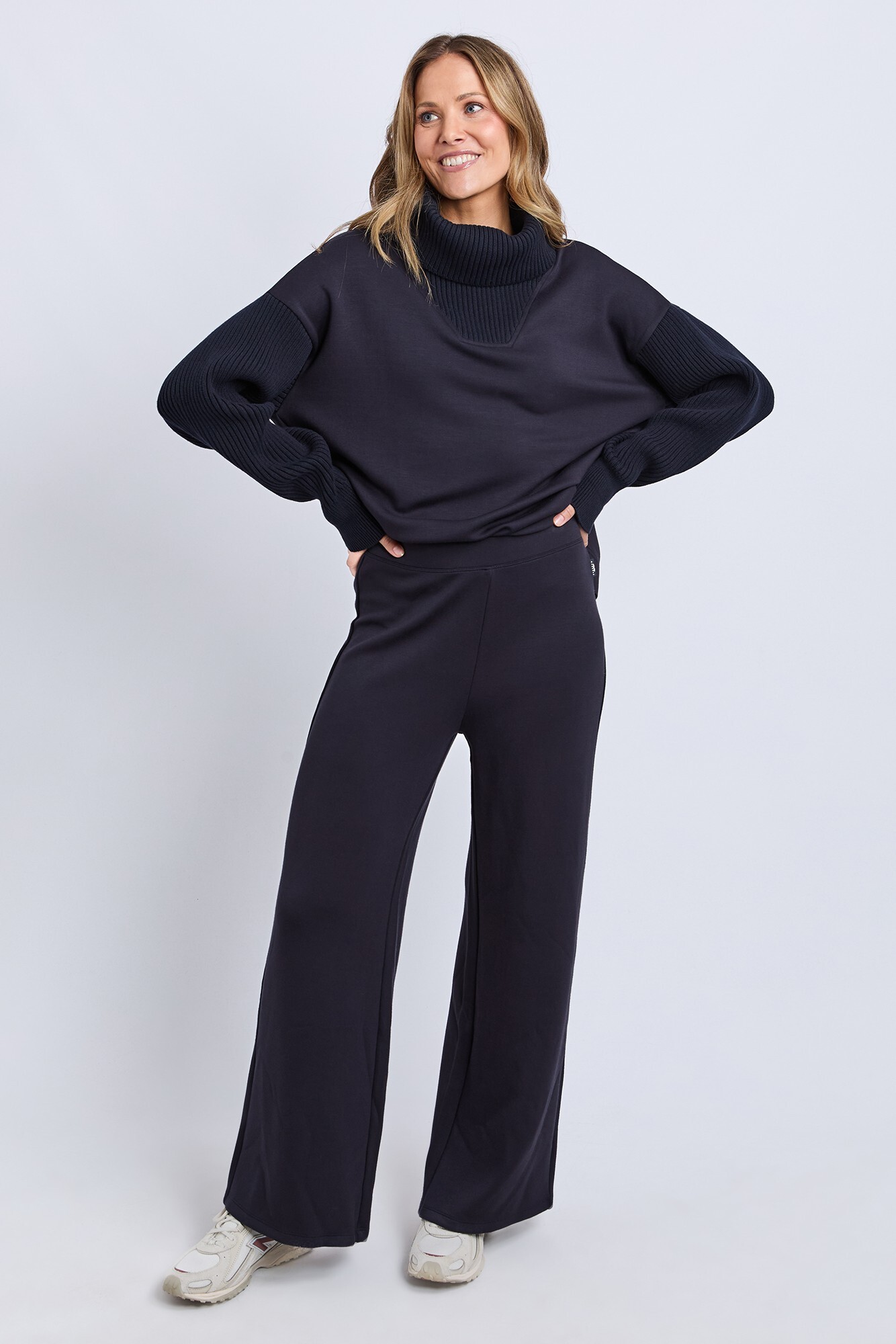 The Elm Freedom Boot Pant is made from Cloudsoft fabric for ultimate comfort and fluid movement. Designed with a relaxed fit, elastic waistband and full-length boot-cut shape, it elongates the leg while staying easy to wear. Perfect for travel days, errands or relaxed everyday styling. "72% viscose, 23% polyester, 5% elastane"