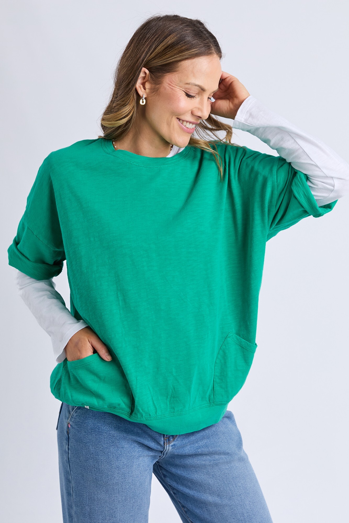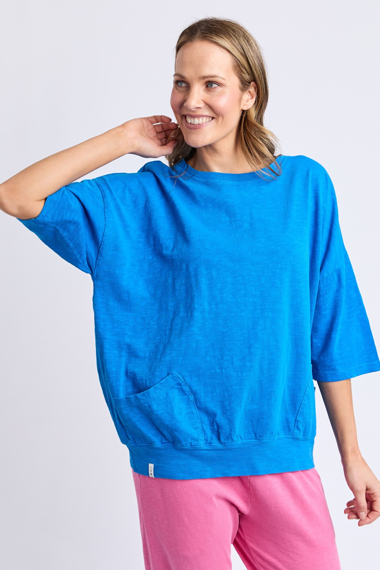 The Mazie Sweat is the ideal blend of style and versatility. This oversized fit and ¾ length sleeves allow plenty of room for movement, and the gorgeous lightweight cotton fabric make it ideal for layering.