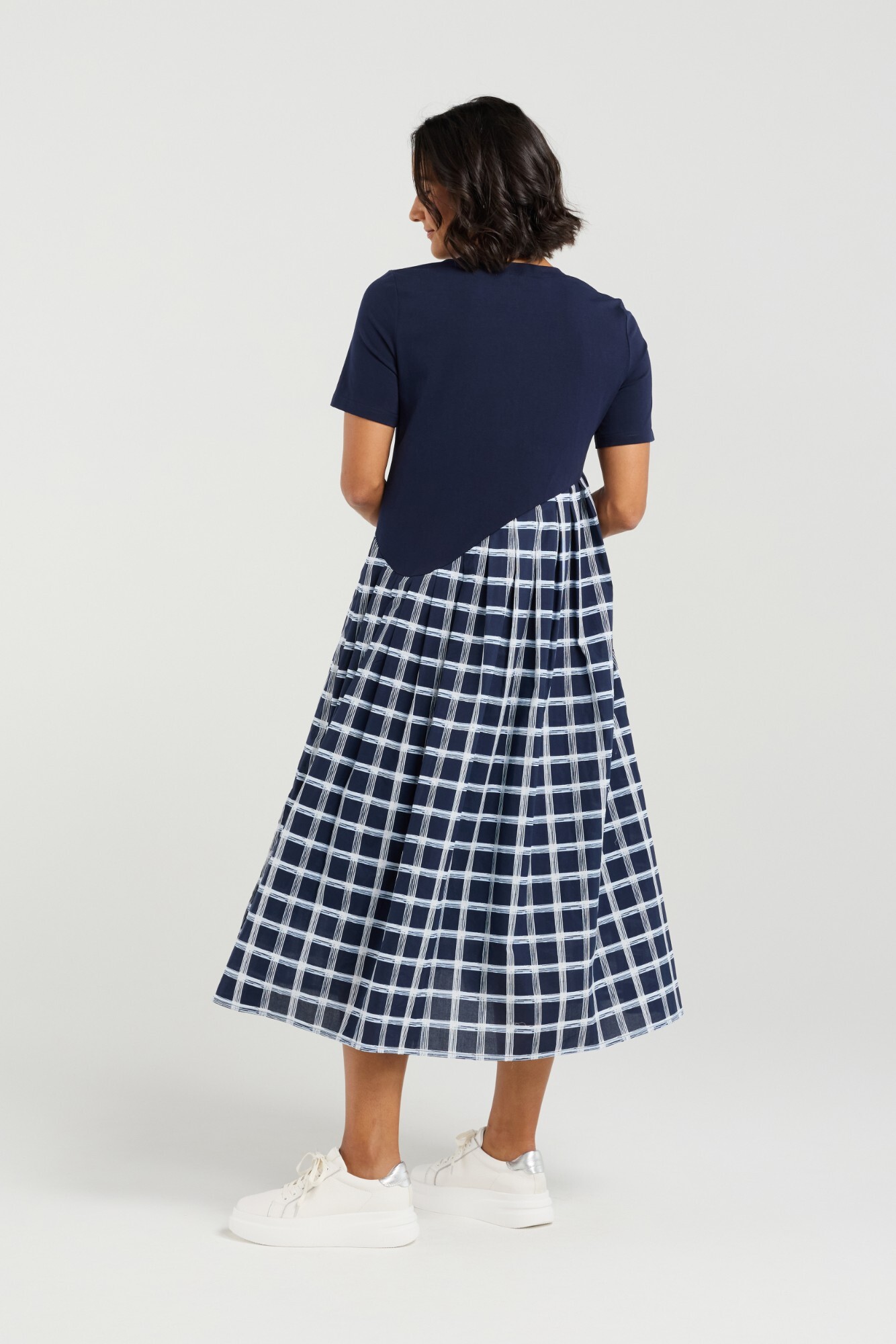 Blending everyday ease with refined movement, this dress pairs a classic tee-style bodice with a pleated skirt for a look that’s both relaxed and elevated. The soft, structured top offers a laid-back feel, while the pleated skirt adds graceful texture and flow. A modern hybrid silhouette that moves effortlessly from casual outings to more polished settings. The Lee dress is sure to be on high rotation this summer.  95% Cotton 5% Spx 100% Cotton 100% Rayon