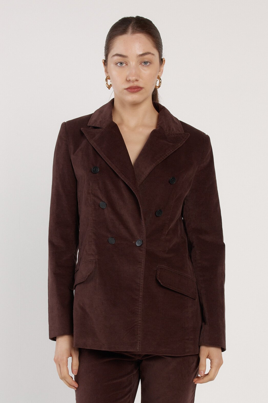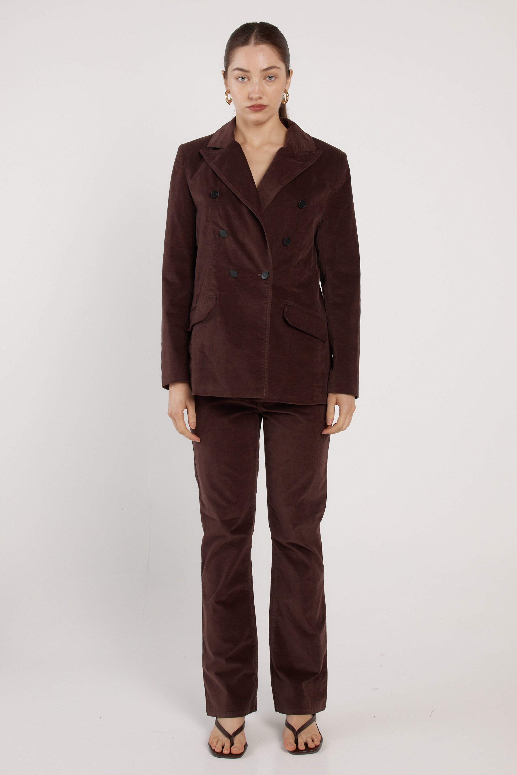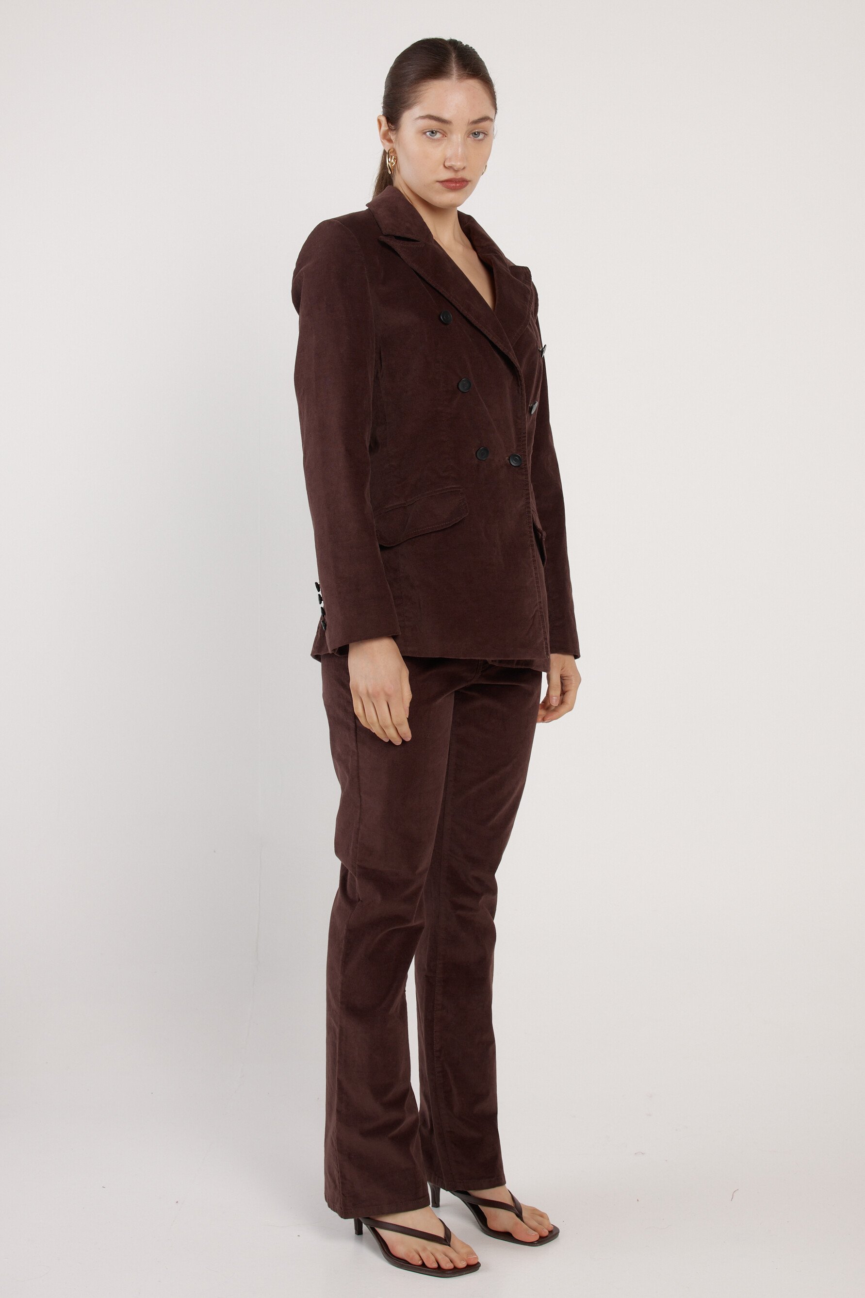 -Soft velvet fabrication-Tailored blazer silhouette-Double-breasted front closure-Refined, elevated evening-to-event stylingFabric and Care98% Cotton, 2% ElastaneFit NotesTrue-to-size tailored fitOur model Anna is 173cm and wears size 10.
