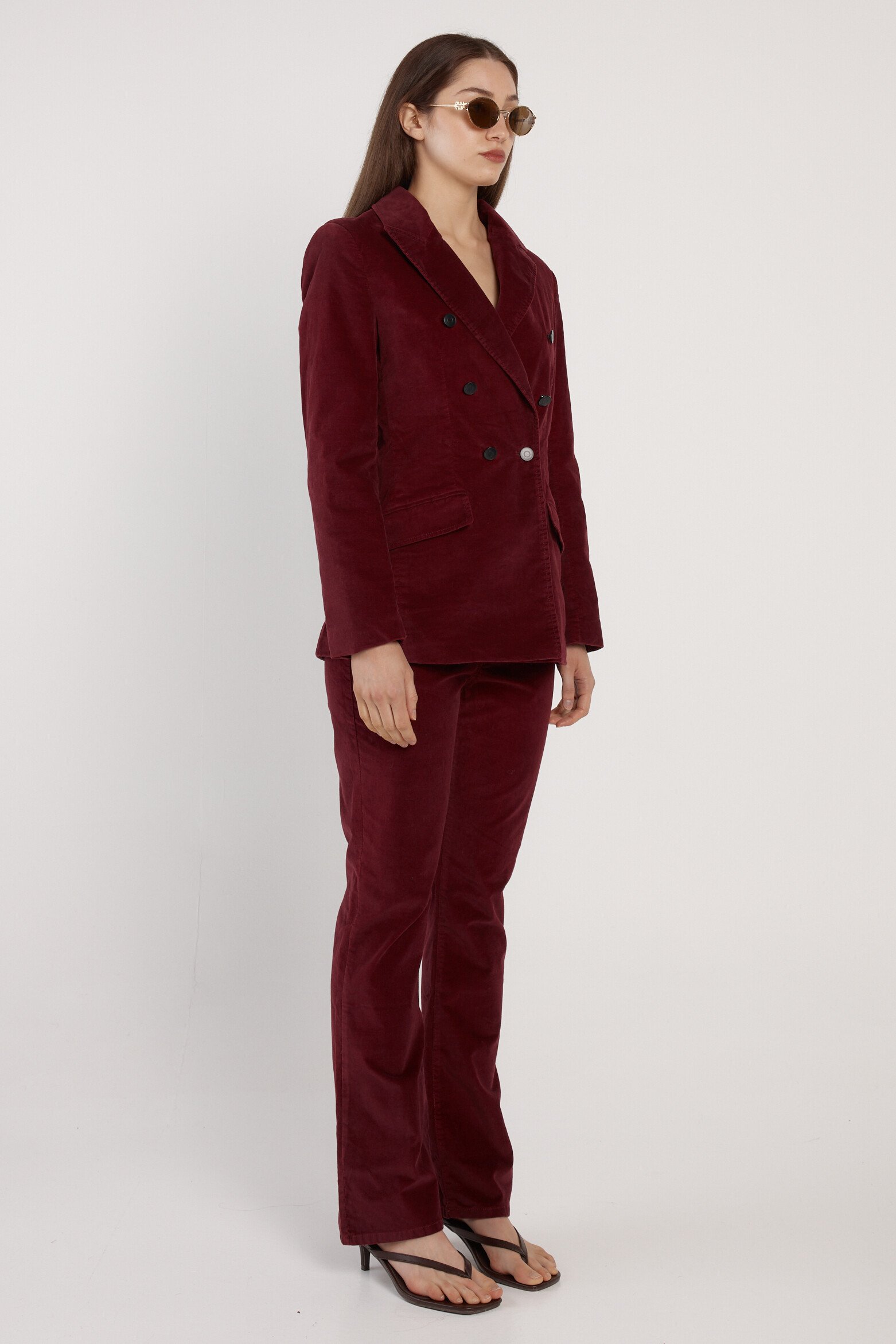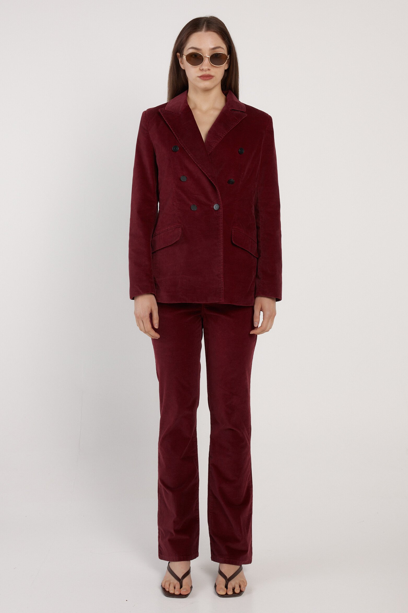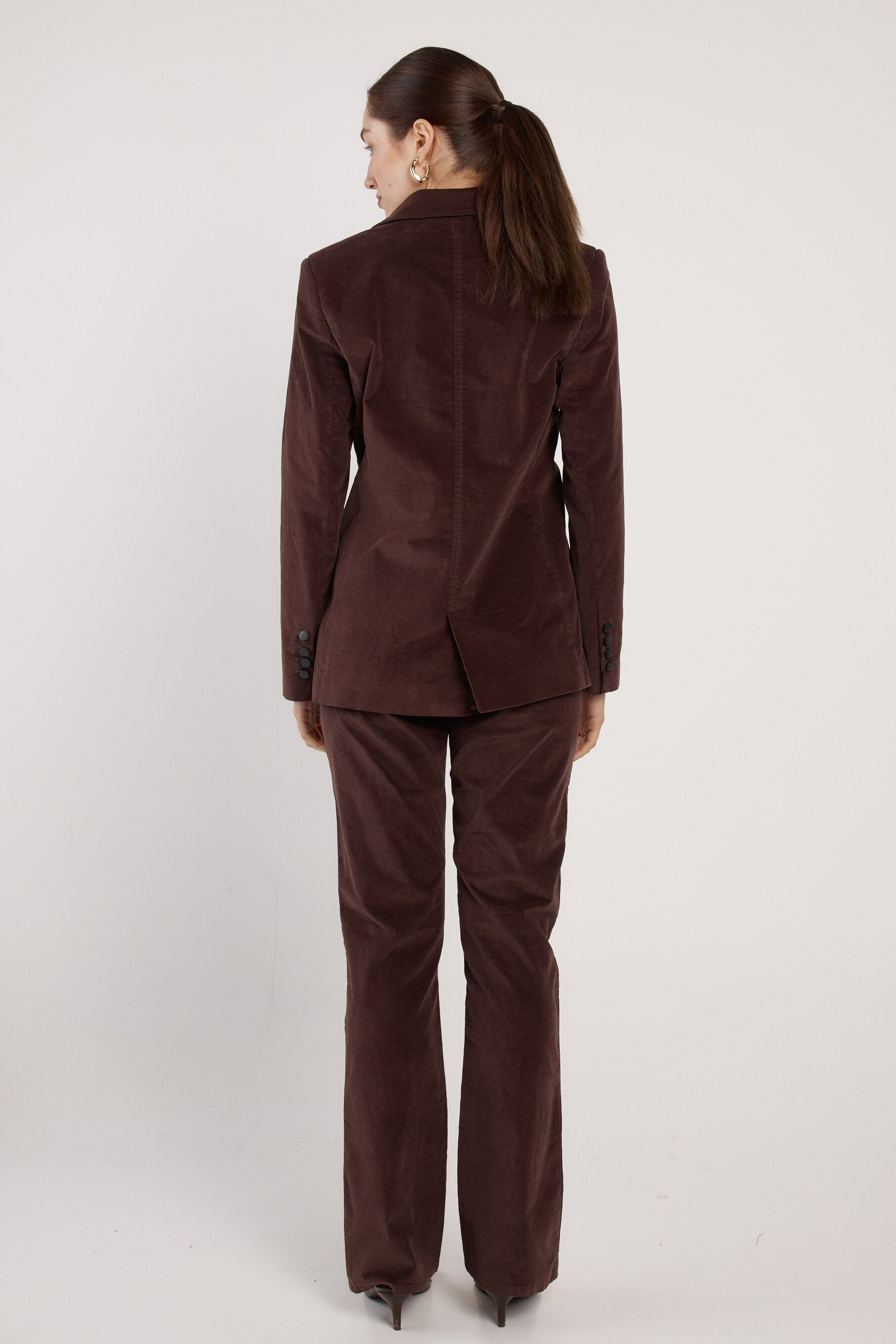 -Soft velvet fabrication-Tailored blazer silhouette-Double-breasted front closure-Refined, elevated evening-to-event stylingFabric and Care98% Cotton, 2% ElastaneFit NotesTrue-to-size tailored fitOur model Anna is 173cm and wears size 10.
