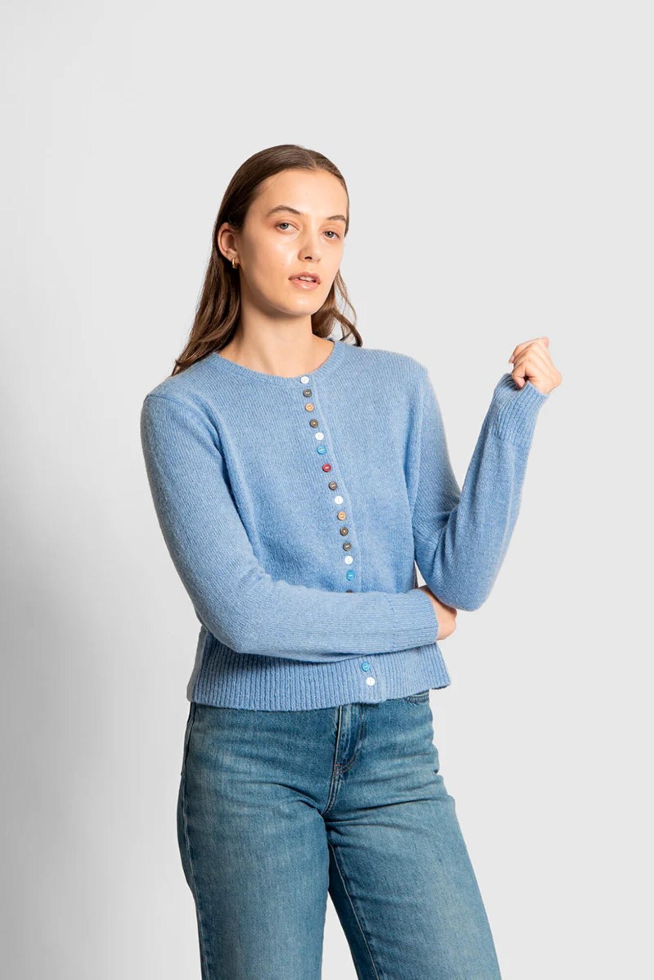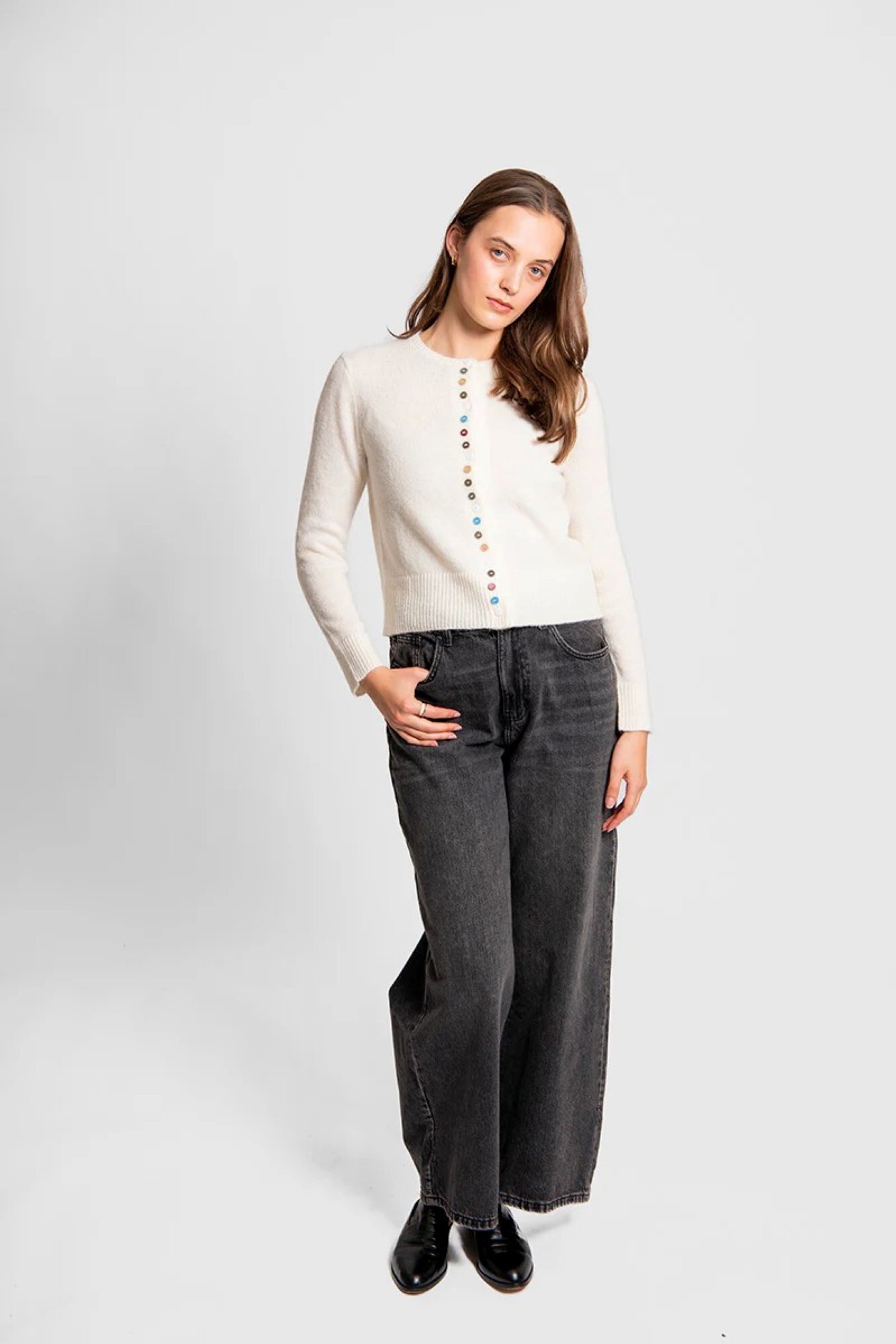 Elevate your layering game with our charming crew cardigan. This crew cardigan blends classic style with playful detailing, making it a delightful and cozy addition to any knitwear collection.