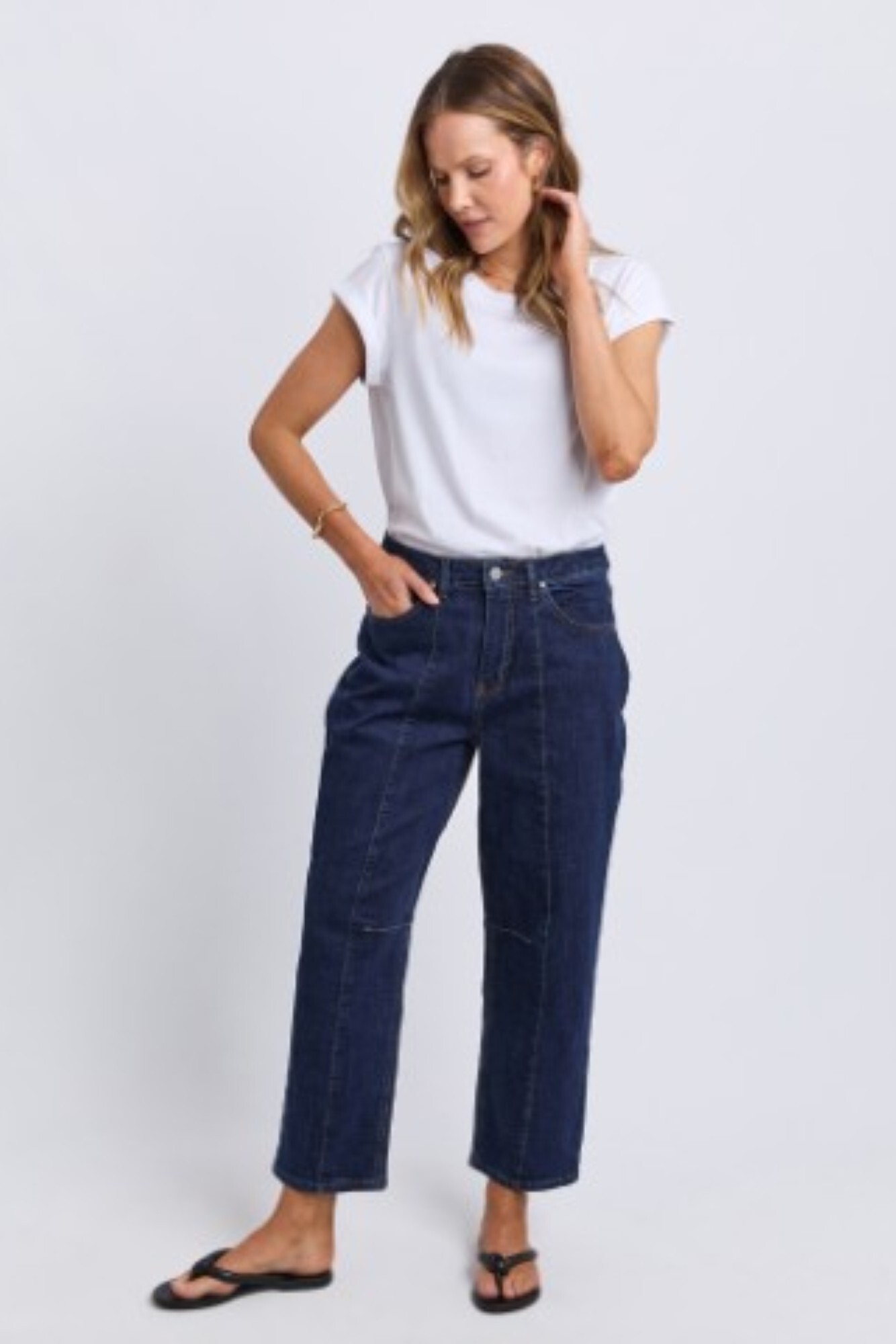 Say hello to your new favourite denim shape. The Ambrose Barrel Jean serves up that cool, curved leg silhouette with a comfy stretch feel—so you get structure and movement. Finished with a front button opening plus front and back pockets (because practicality matters), it’s the kind of jean that makes a basic tee look instantly styled.