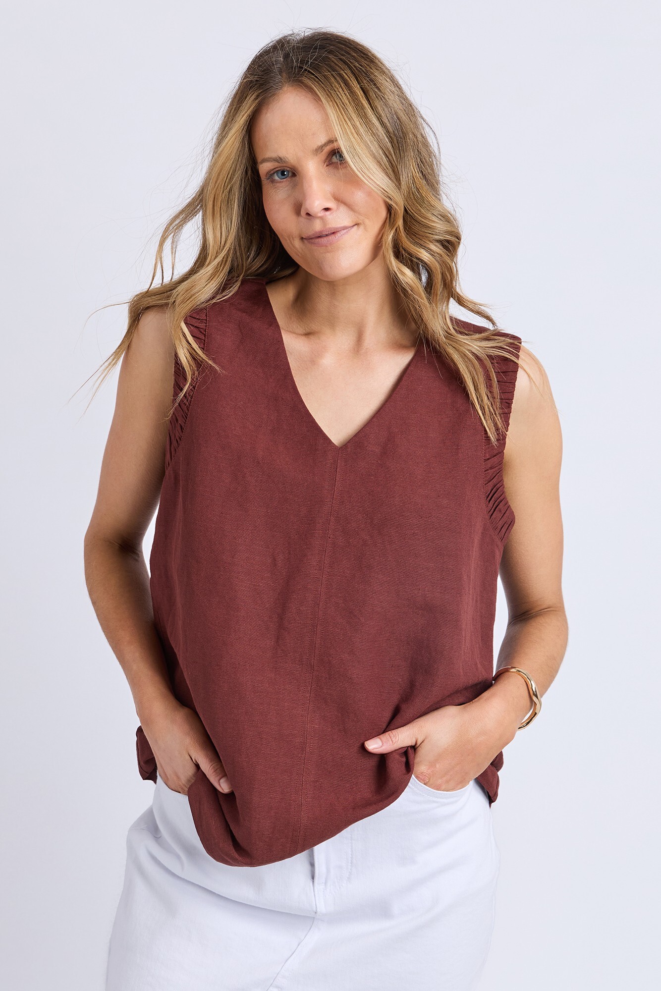 The Bermuda Top is all about relaxed summer vibes. With its linen blend feel, playful frill detail and clean V-neckline, it is a style that looks just as good dressed up as it does casual. 55% Linen 45% Viscose
