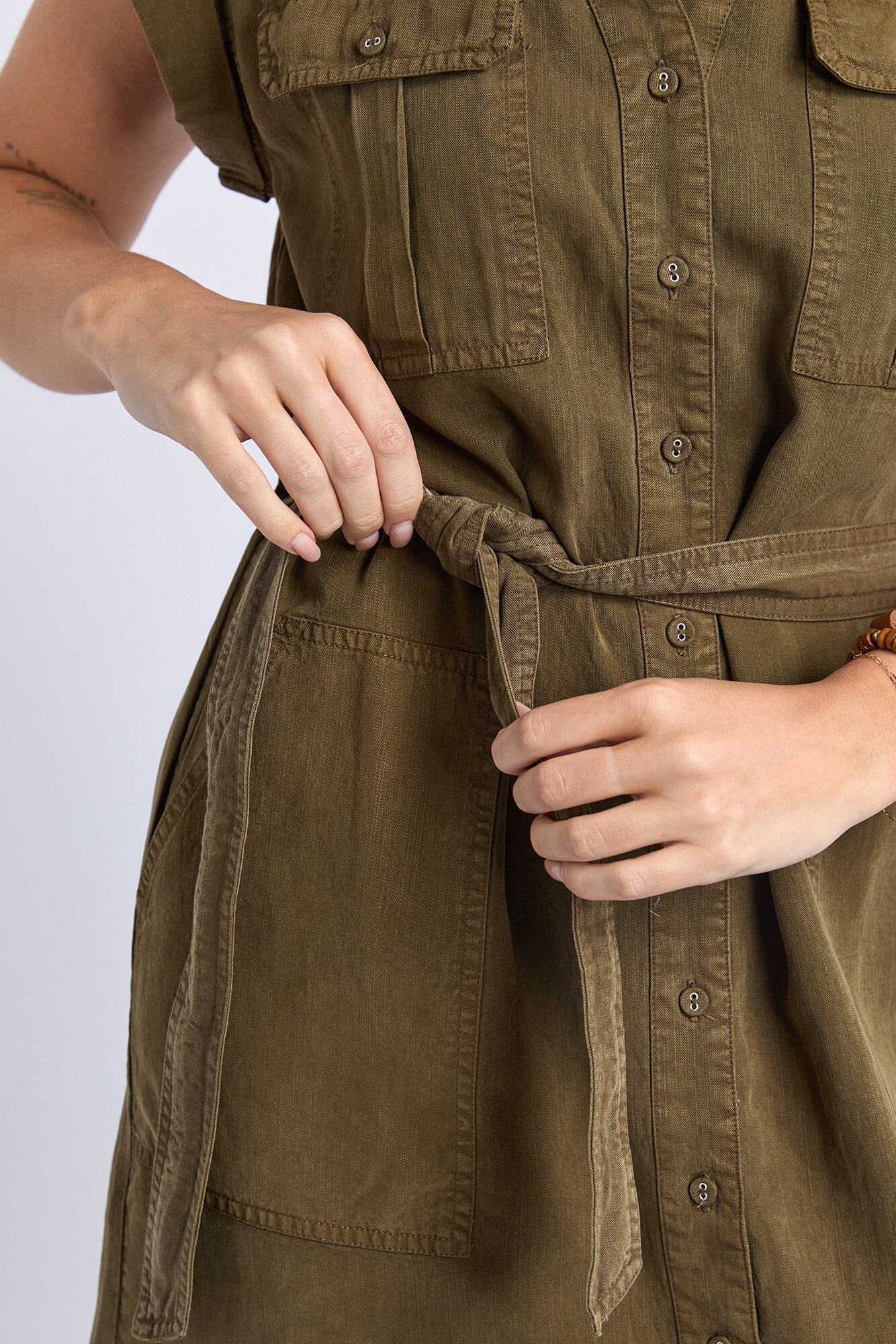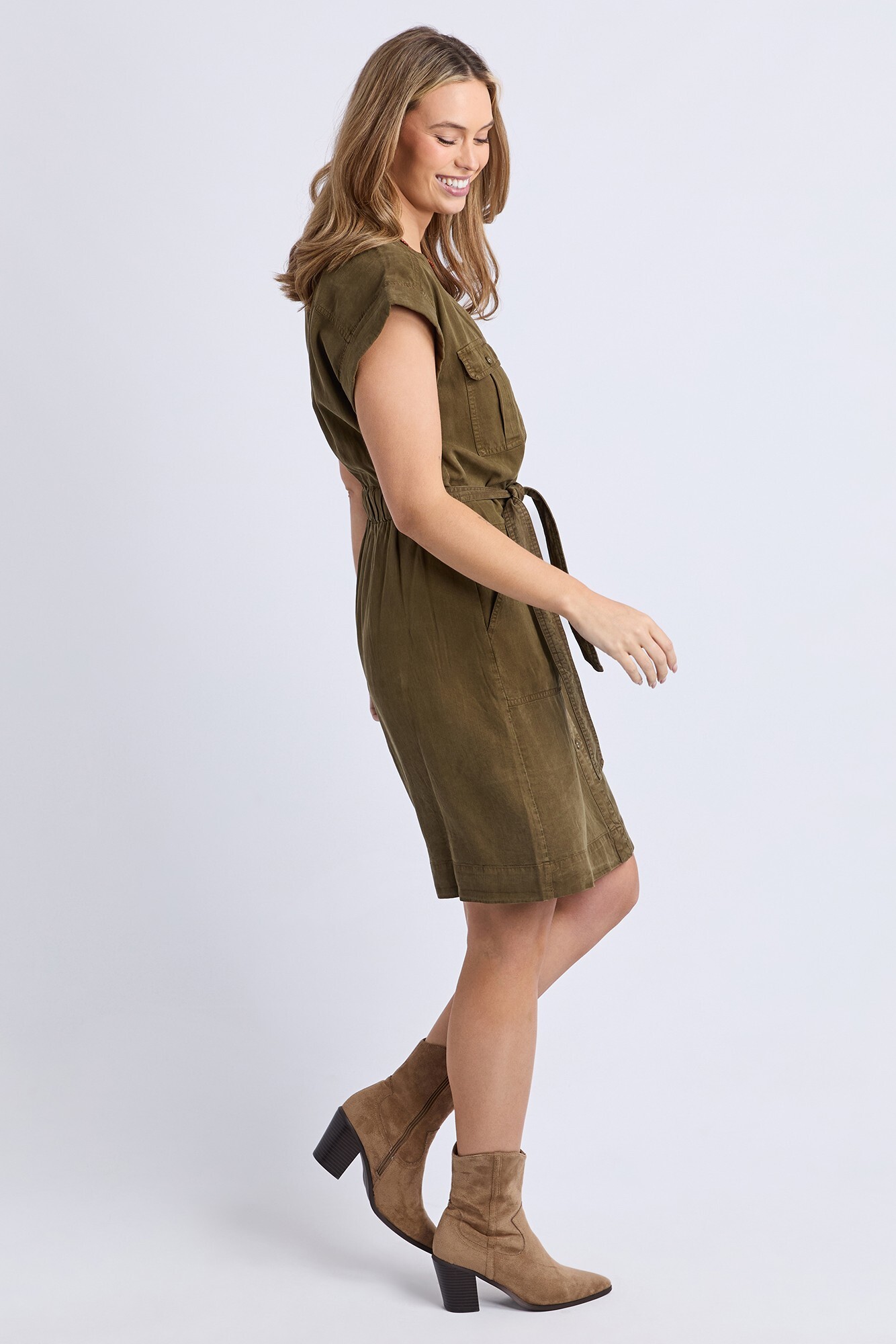 The Dakota Dress is an instant favourite for sunny days and easy styling. Made from a soft Linen blend, it feels light and breezy with a flattering shape that moves beautifully. The Vee neckline, button-through front, and waist tie add just the right touch of detail, making it a go-to for both casual and dressed-up moments. 85% Lyocell 15% Linen