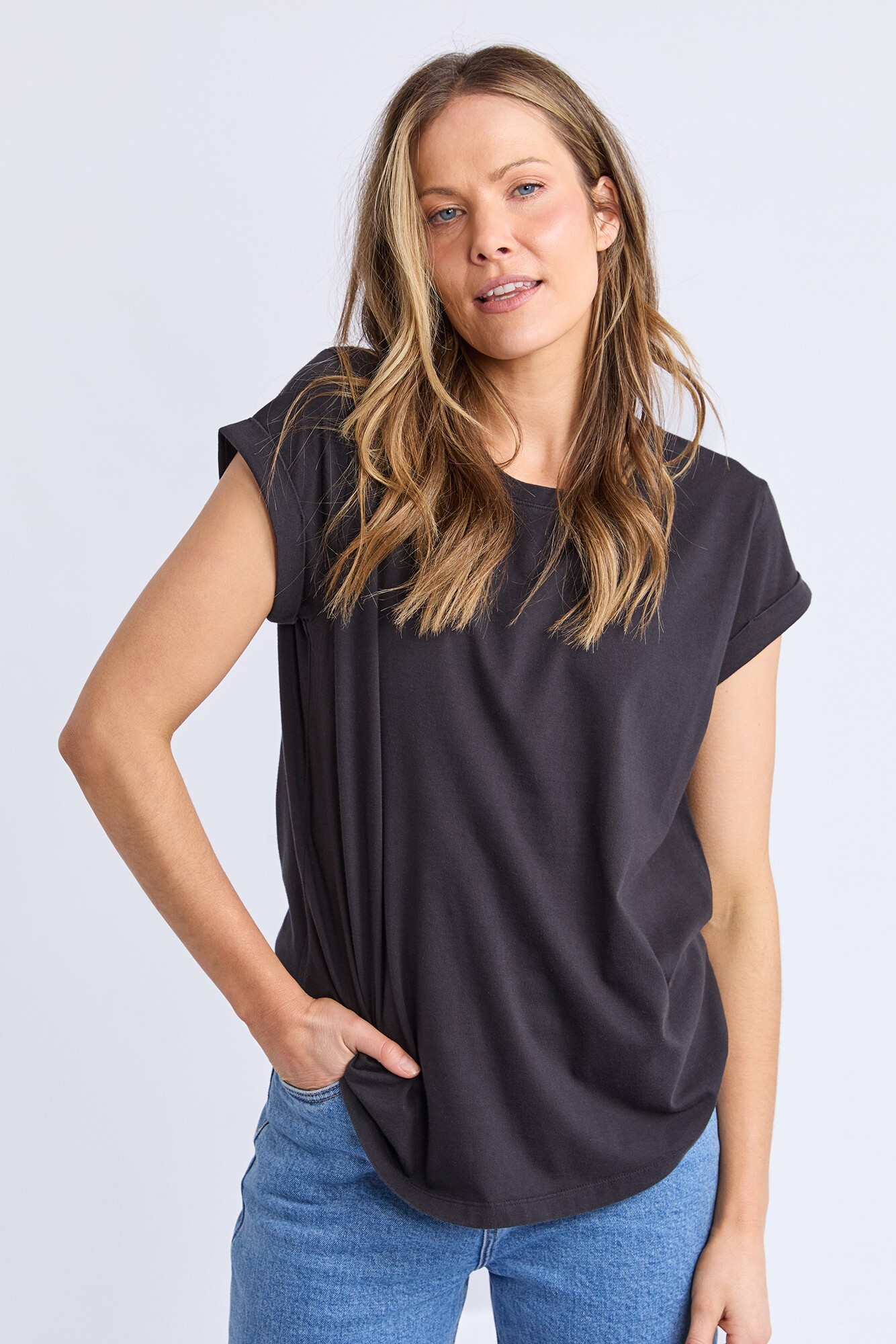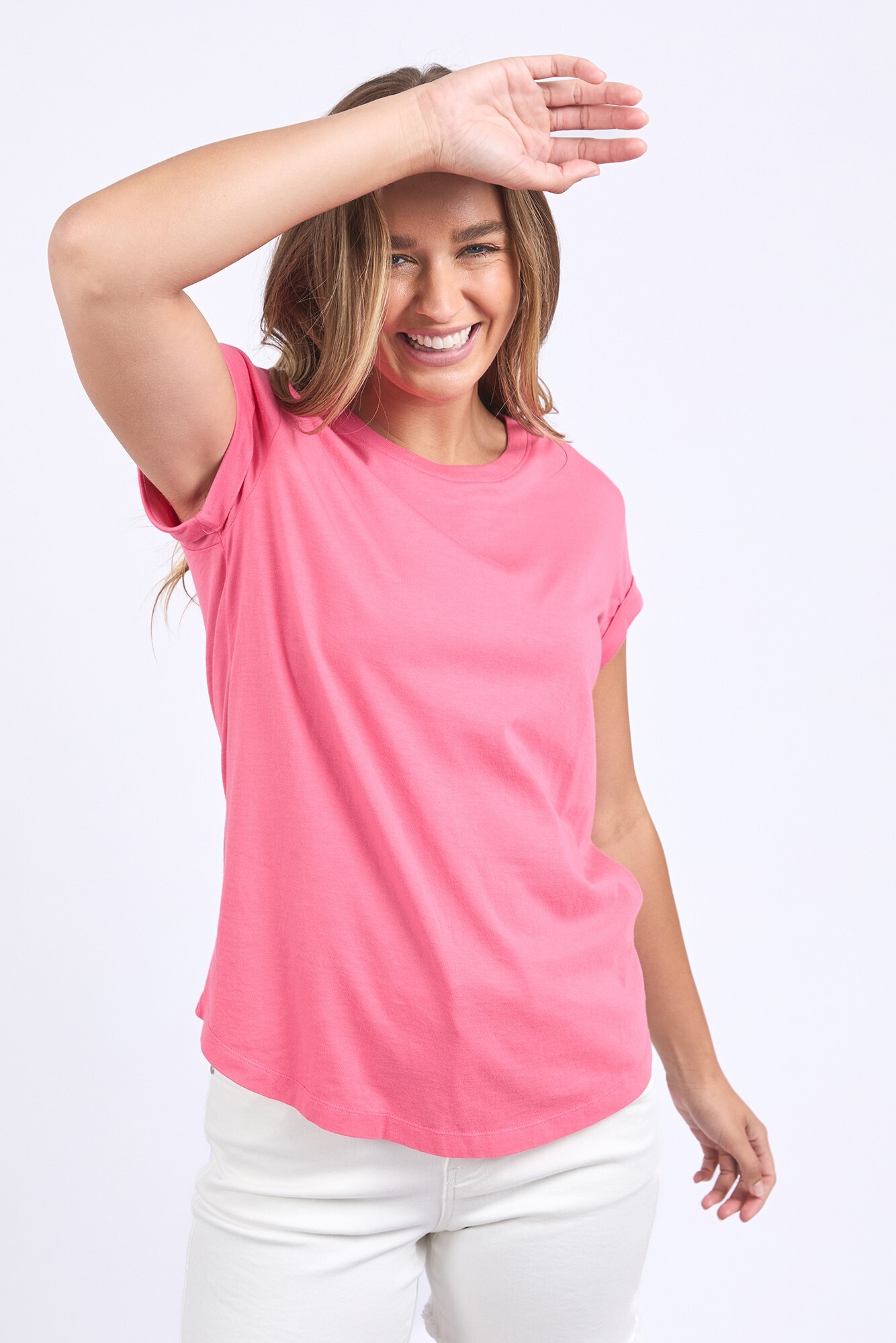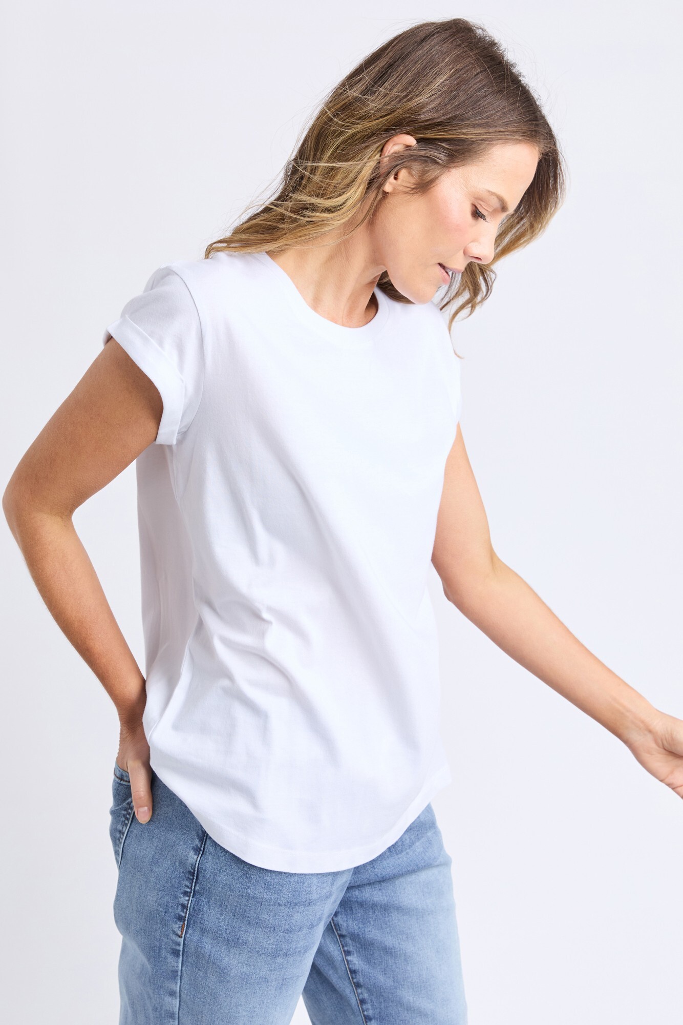 This will be your favourite tee in no time! Super soft and cool in 100% Pima cotton with rolled cuff sleeves and a curved hem. Get one in every colour! 100% Cotton