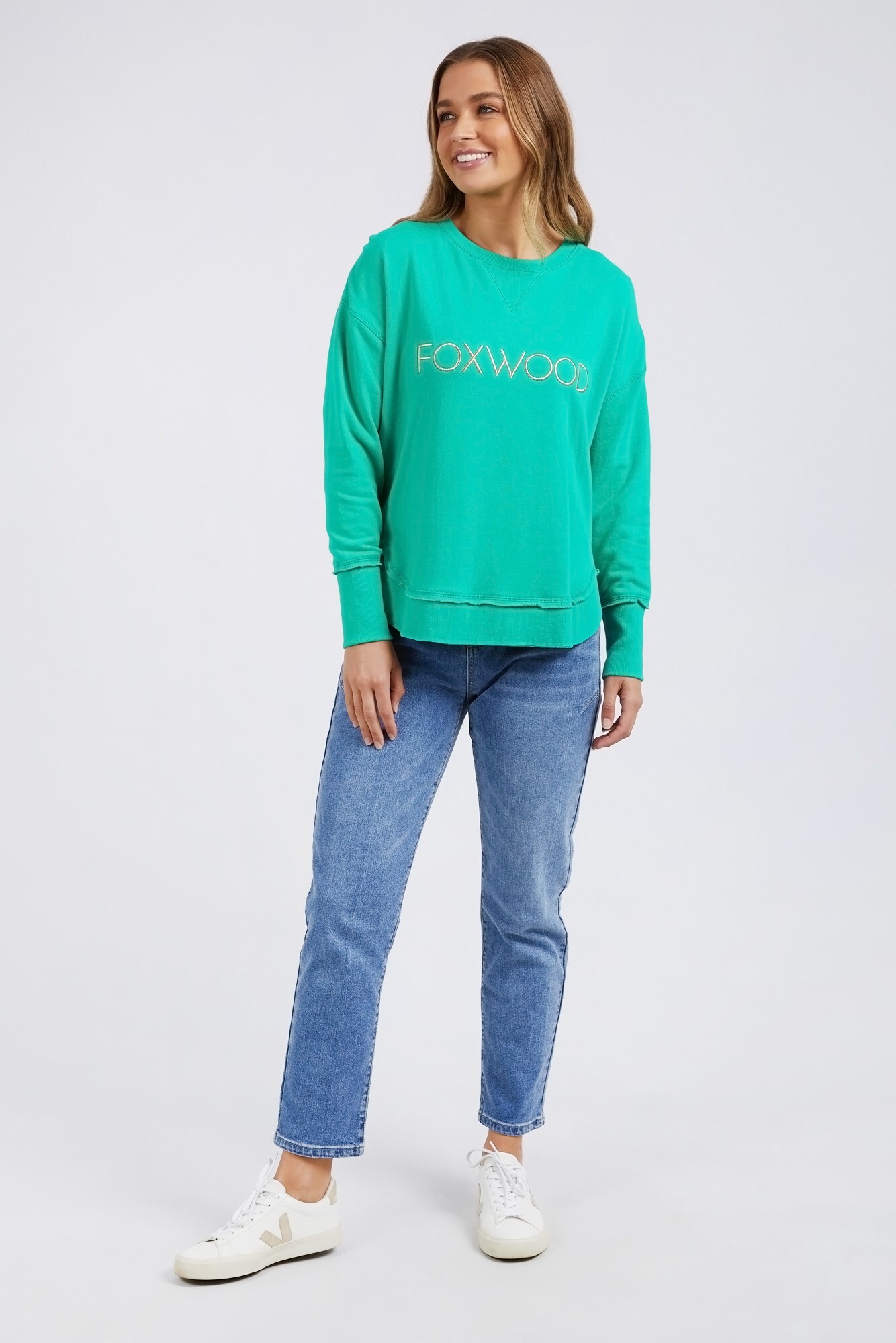 The Bling version of our Best Selling Simplified Crew. This crew is the perfect throw over for your everyday wardrobe. With its round neck, hi-lo hemline, side splits with raw edging & the classic Foxwood logo, you are going to want one in every colour. The Metallic Crew has a stunning lurex thread run through the Foxwood embroidery for that little bit 'extra'.