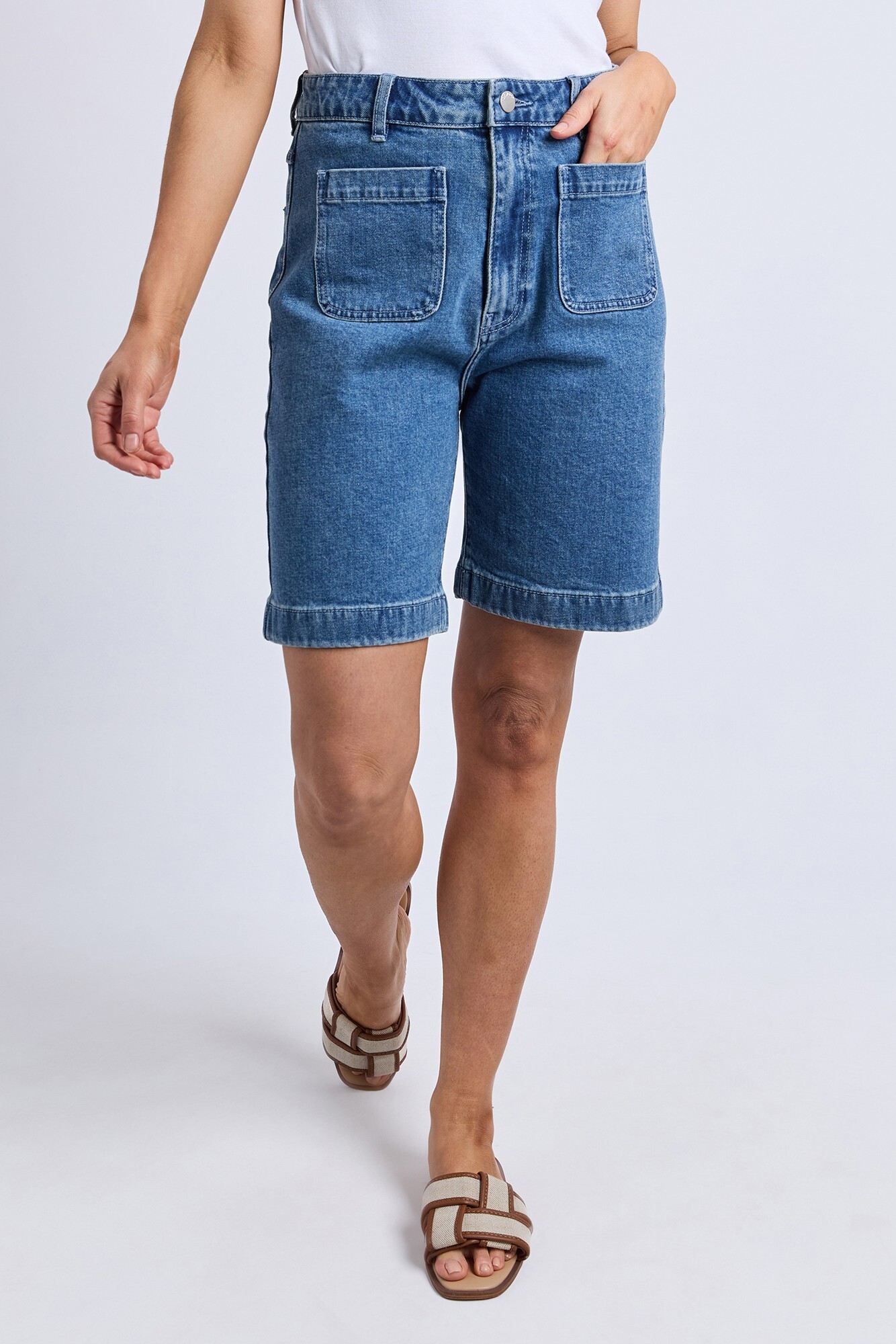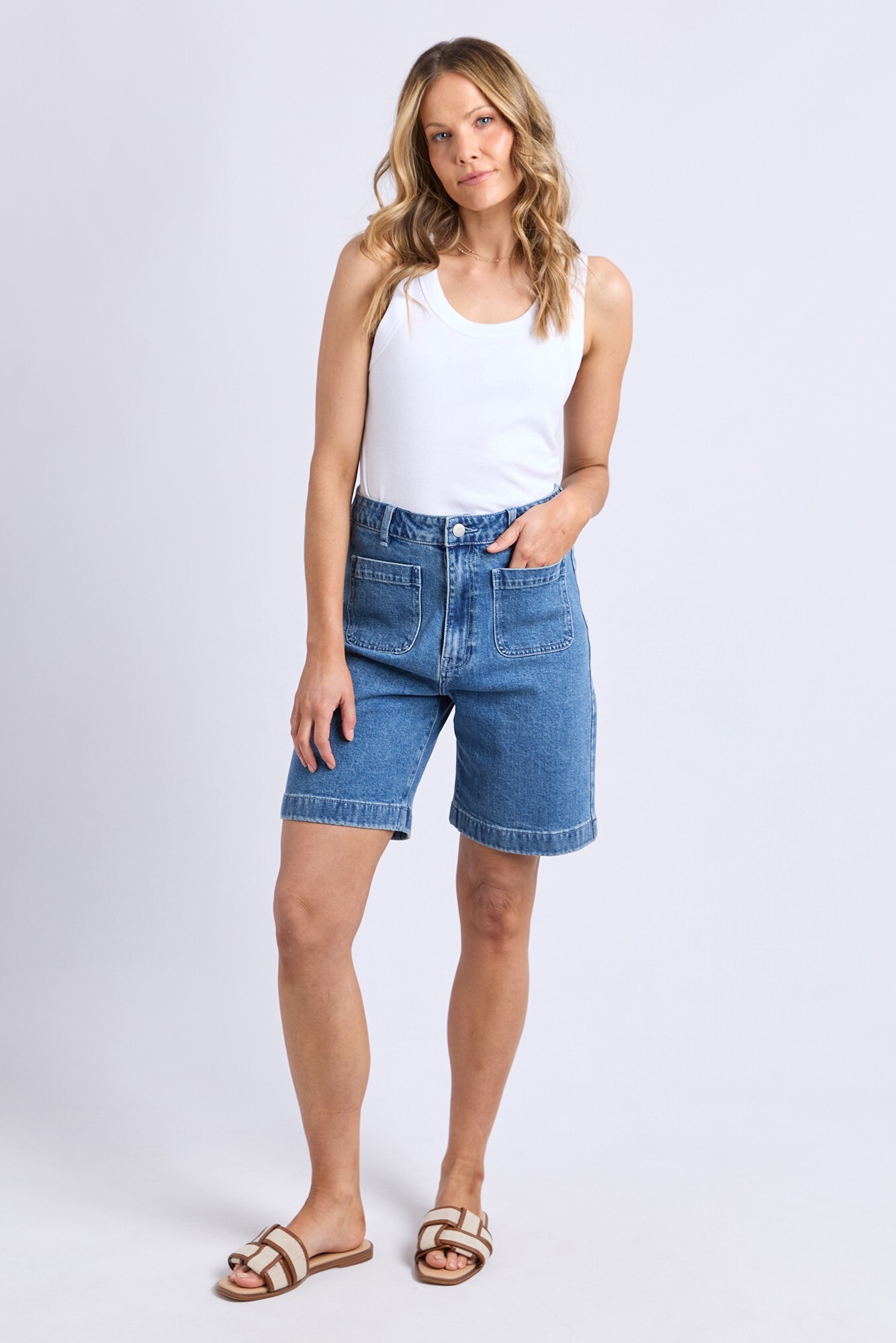 Crafted from a premium blend of 97% cotton and 3% elastane, the Sarah Short offers exceptional comfort with a subtle stretch for ease of movement. Designed to fall at knee length, it features practical pockets and belt loops for versatile styling, paired with a secure zip-up closure for a polished finish.