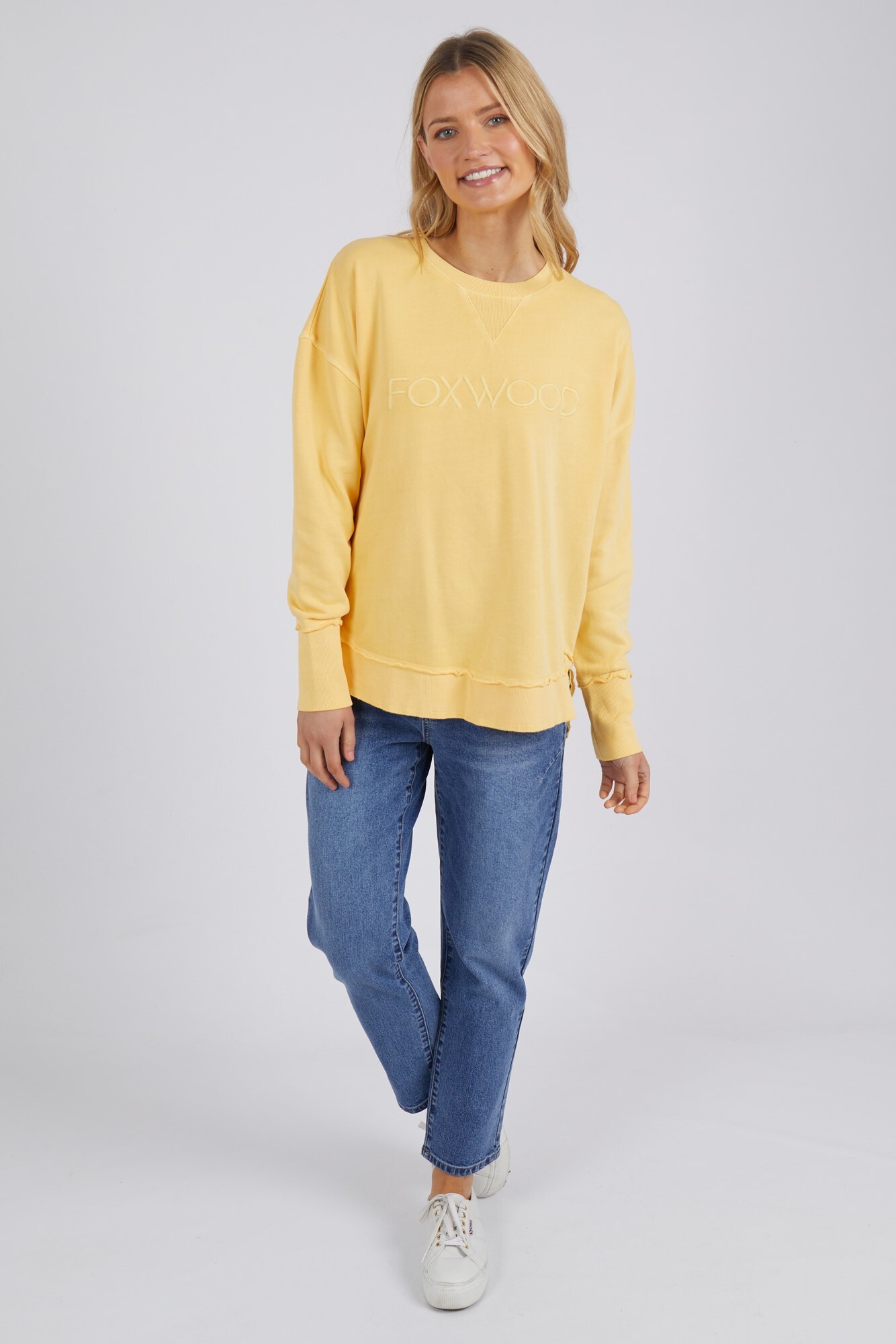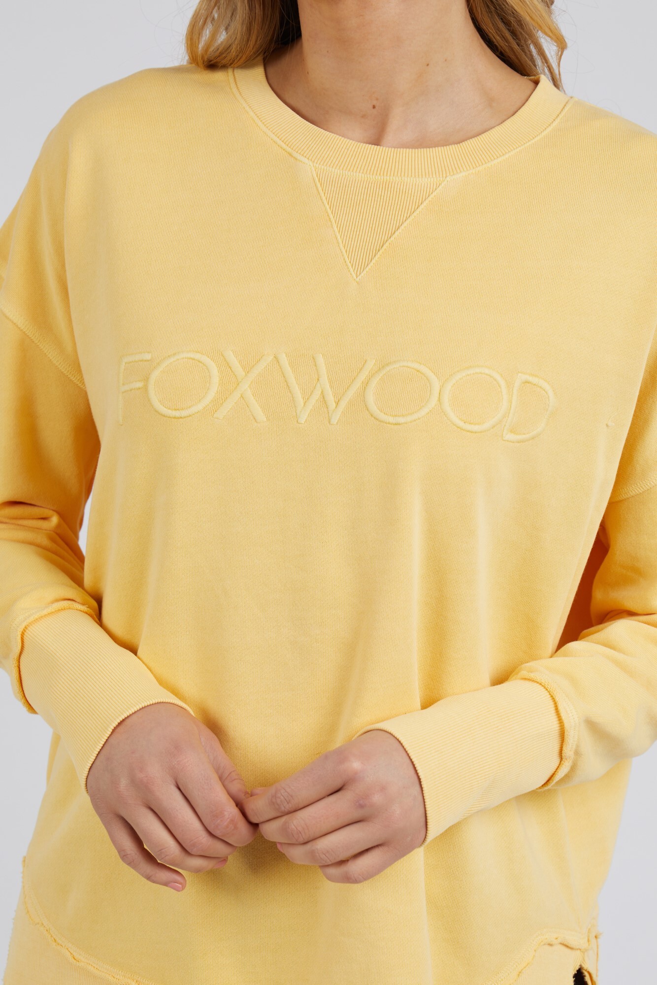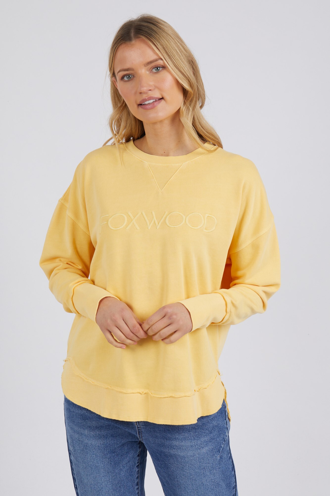 The Simplified Crew is the perfect throw over for your everyday wardrobe. With its round neck, hi-lo hemline, side splits with raw edging & the classic Foxwood logo, you are going to want one in every colour.