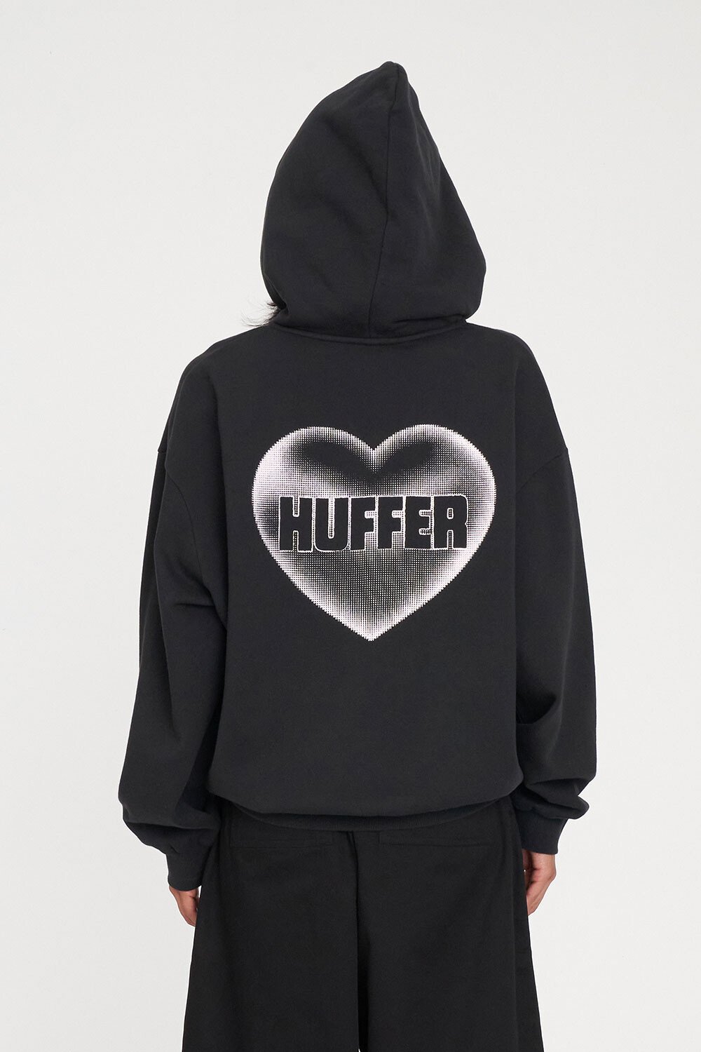 • What you need to know: 100% Cotton, 350gsm, Mid-weight brushback fleece, Custom Huffer colour, Relaxed fit, Kangaroo pocket, Huffer branded hardware, Huffer branded placement screenprint