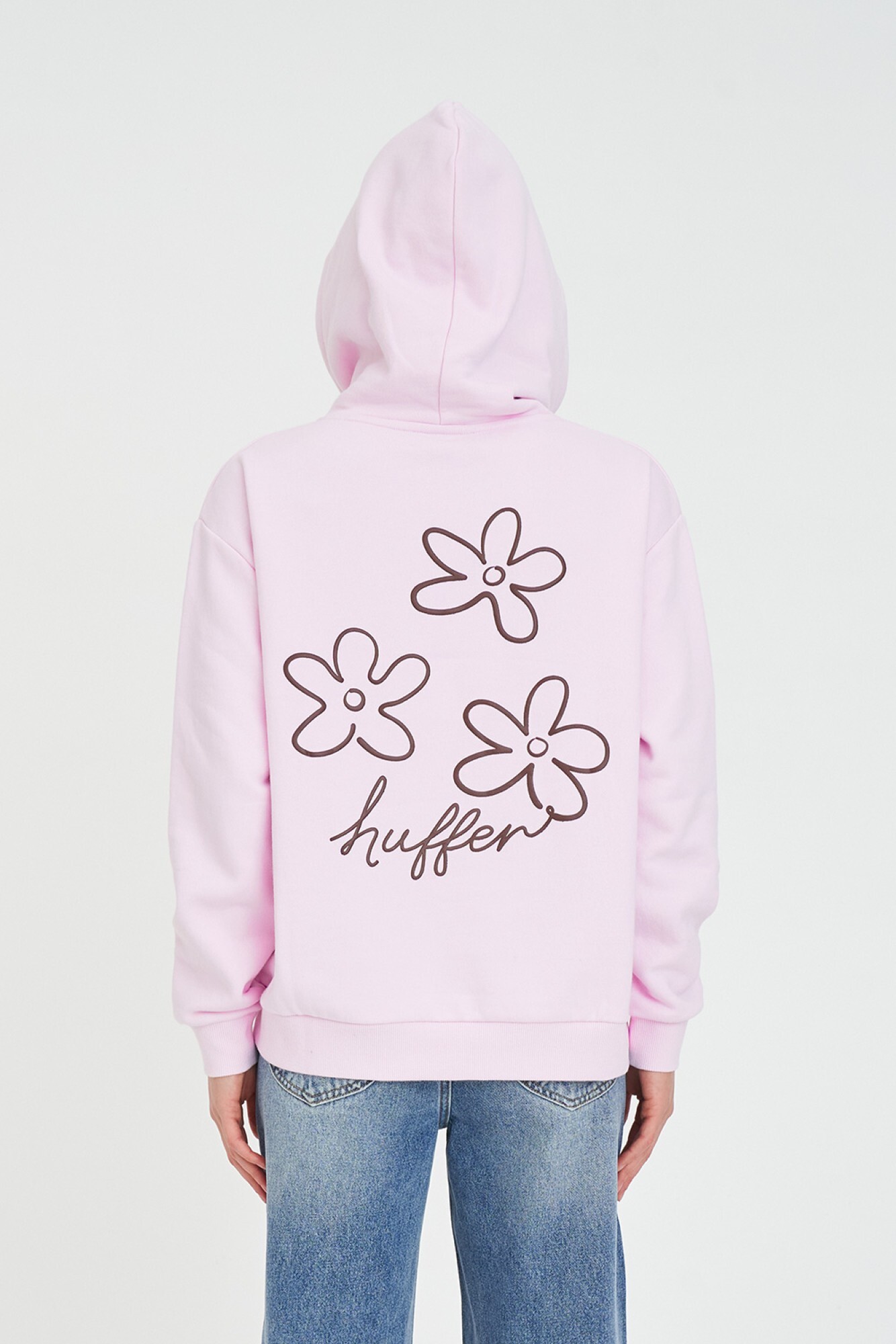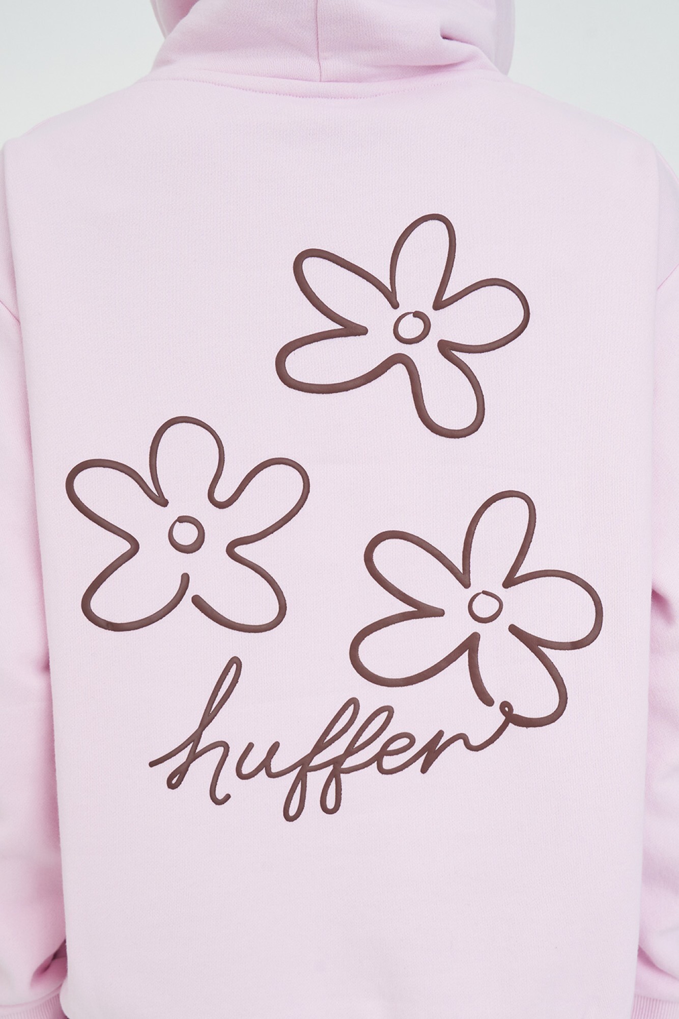 • What you need to know: 100% Cotton, 350gsm, Mid-weight brushback fleece, Custom Huffer colour, Boxy fit, Huffer branded placement puff print