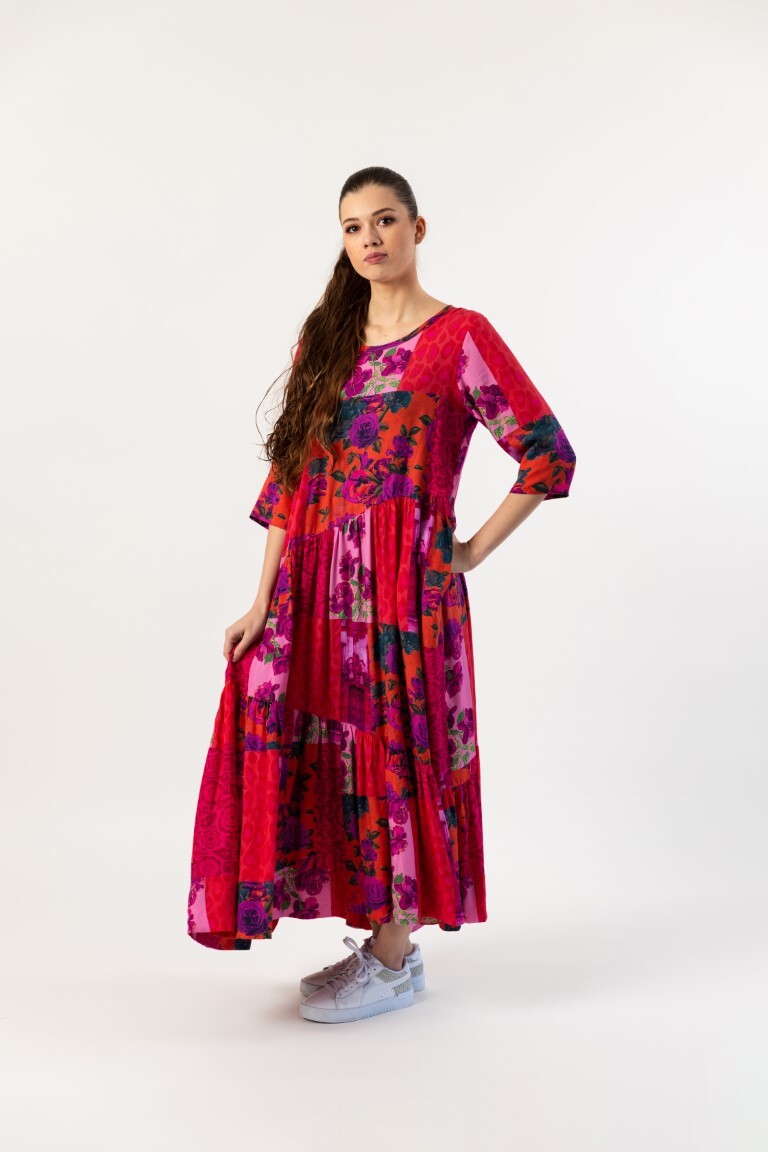 This easy wearing dress features an angle gathered panel through the front and back to add fullness and freedom. The drape of this 100% rayon falls and hangs beautifully over the body – fabric printed exclusively for Jellicoe, there are so many reasons to make this part of your winter collection.
