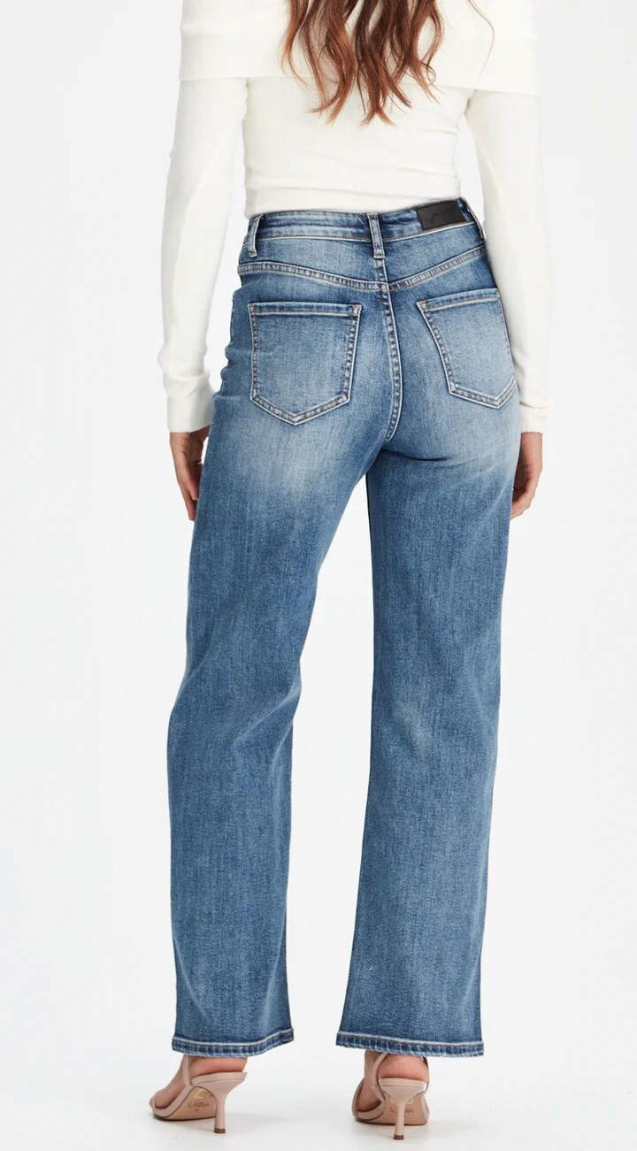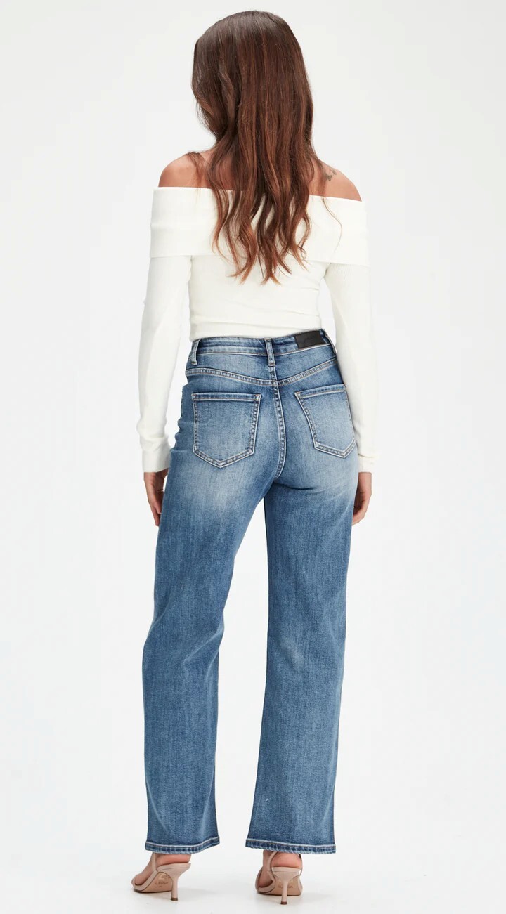 Wendy SHORT STUFF fits slimmer to the waist & body with a relaxed and wider leg. In a premium stretch denim and perfect denim blue colour.