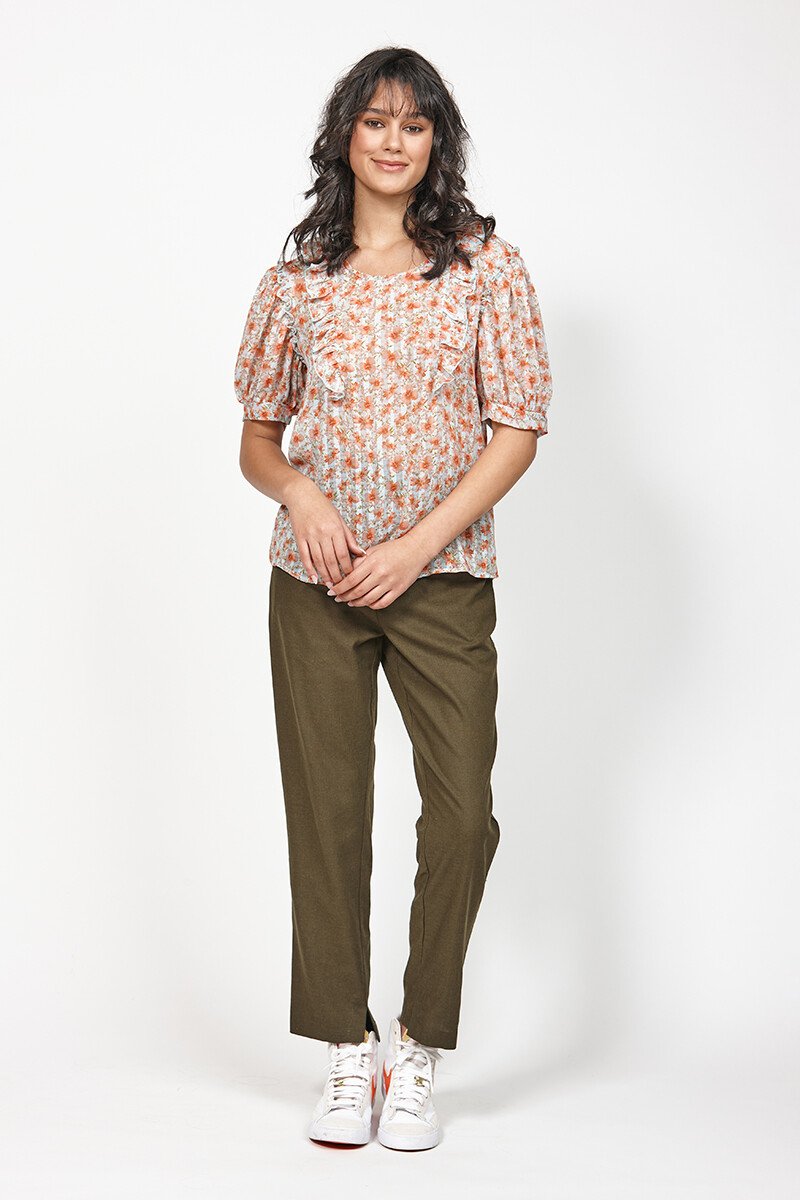 If you love frills and florals, the Back Up Top is a no brainer! Made in a light-weight, semi sheer fabric, with frills details on the front and shoulders it's a stunner!