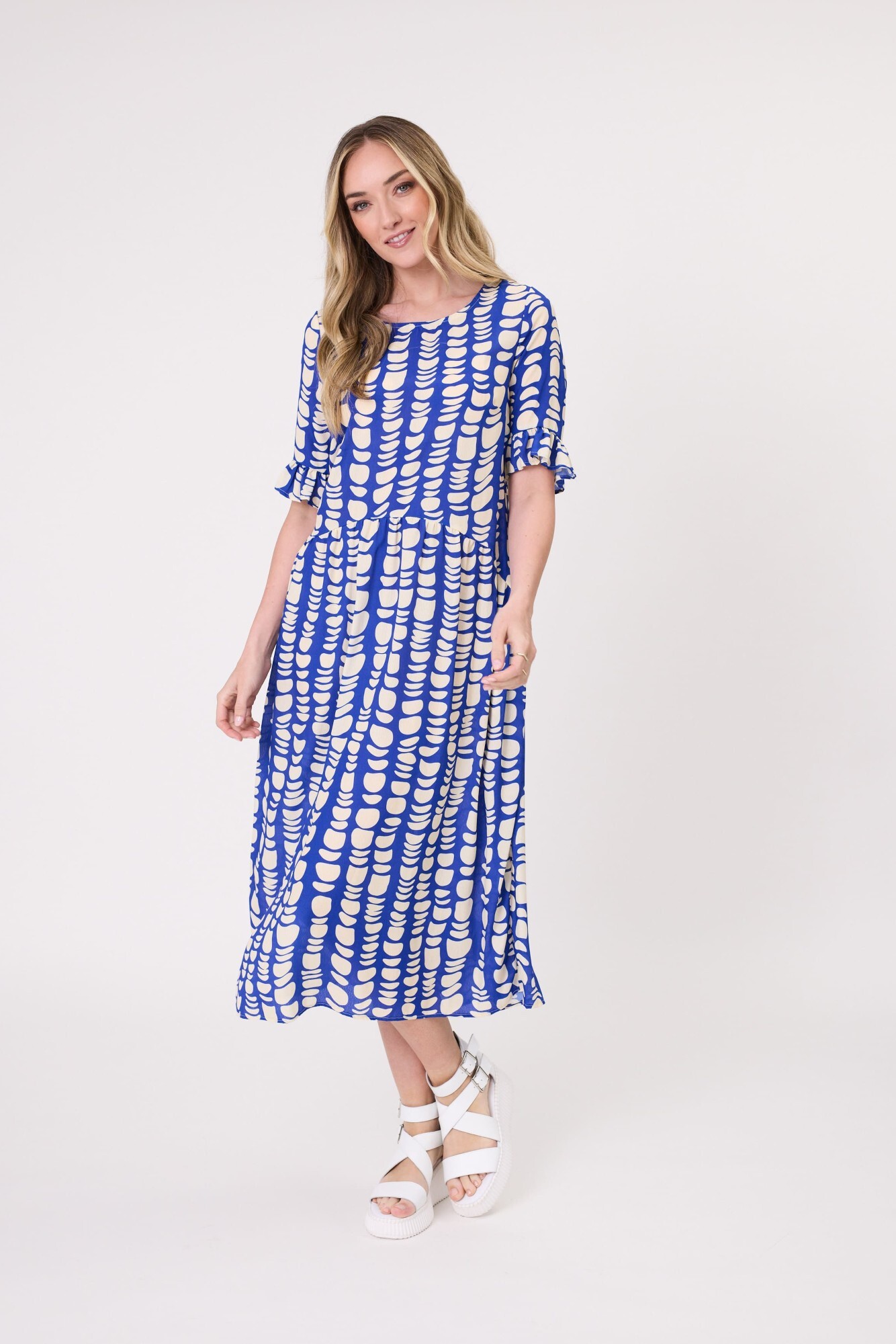 • Crafted from a silky crepe rayon-viscose blend, it comes in a flattering midi length.