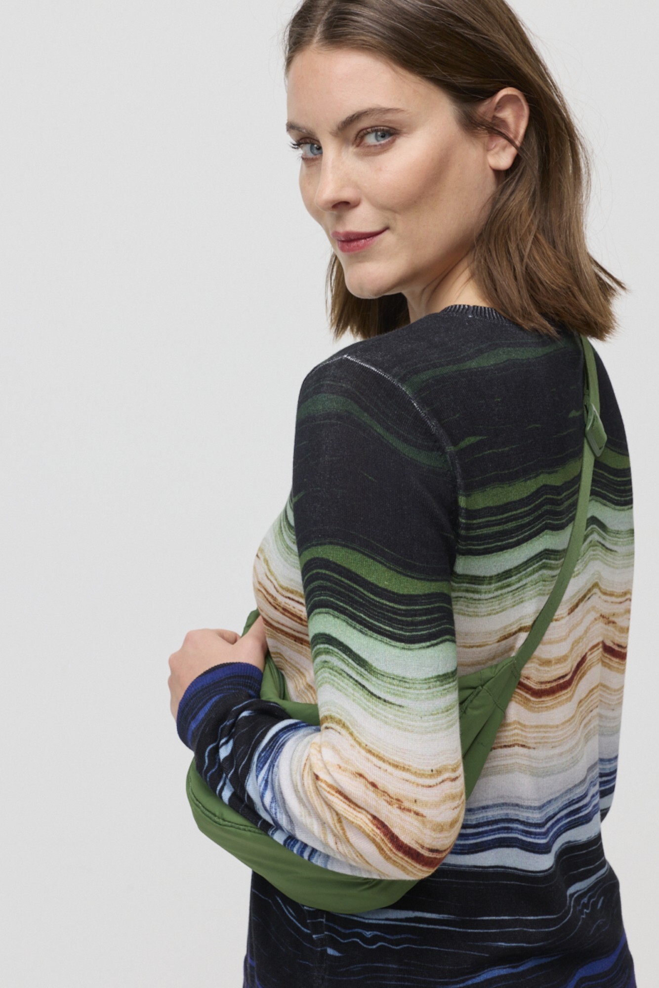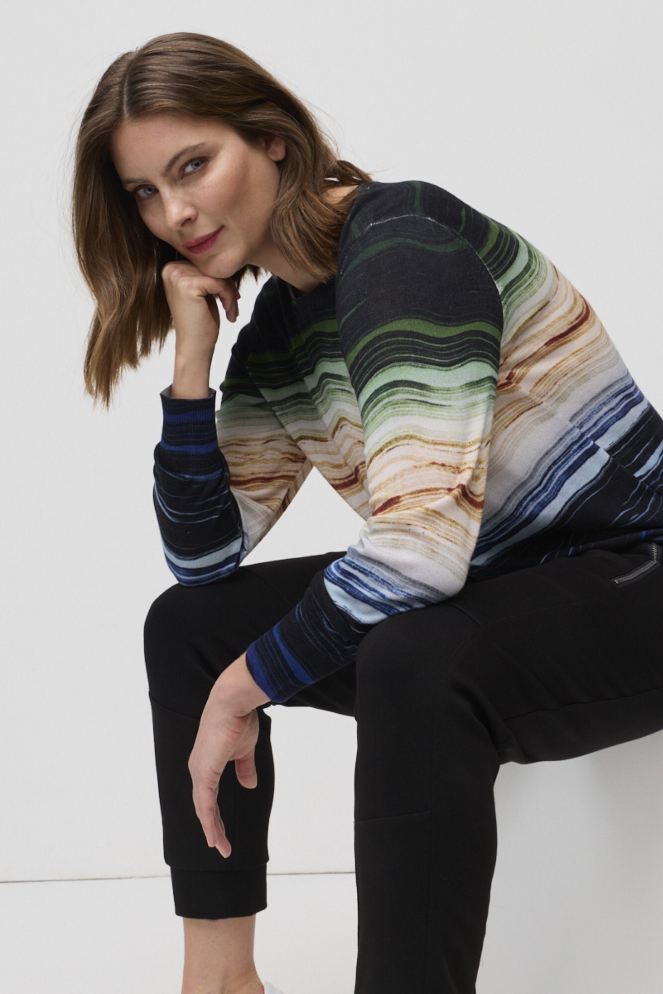 The Afternoon Shadows Knit is crafted from a soft viscose cotton blend, offering a relaxed fit and all-day comfort. Designed with a round neckline and an abstract striped print in rich, colourful tones, this statement knit adds interest to everyday dressing. Pair it with tailored pants or denim for an effortless work-to-weekend look.