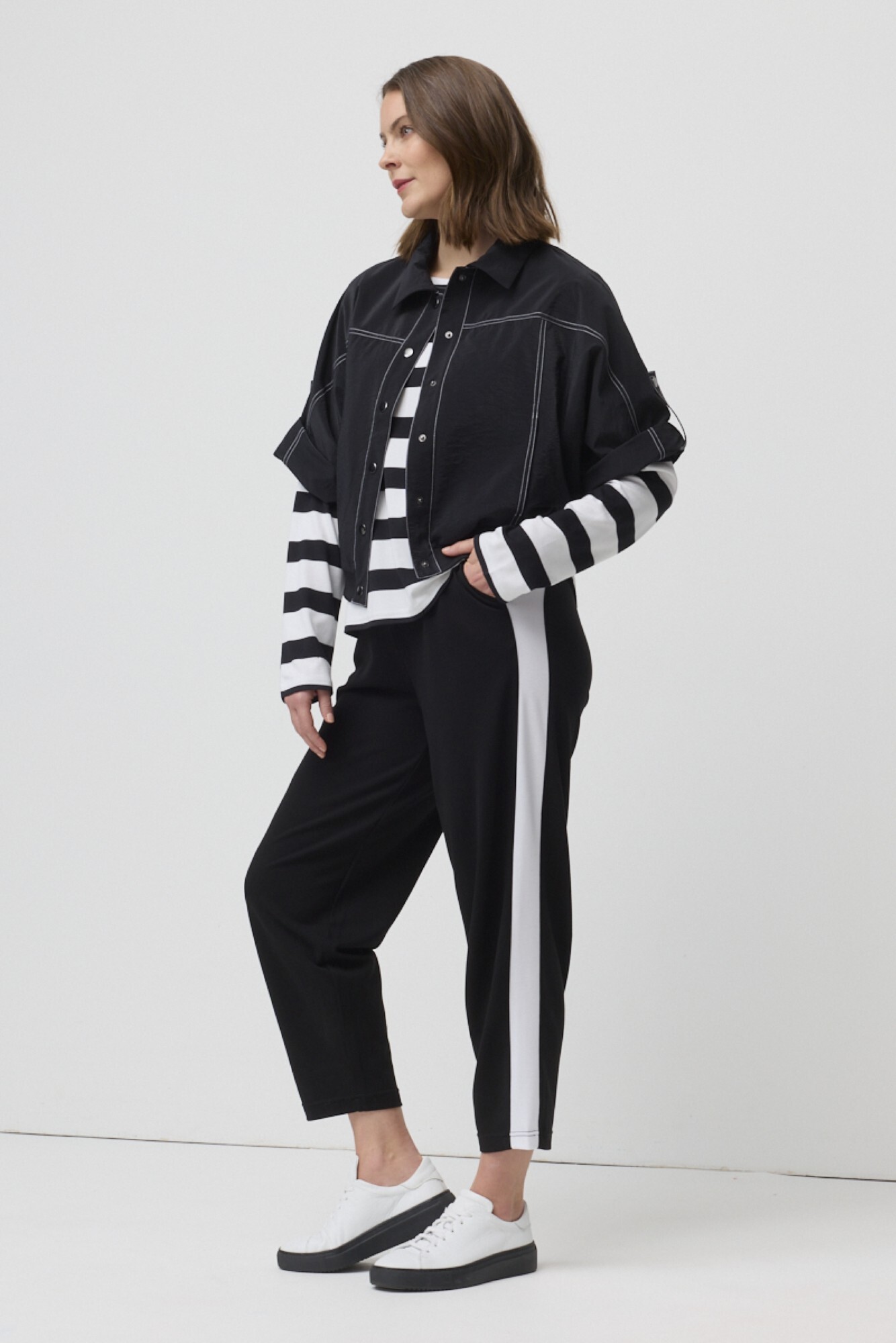 In our best selling viscose blend, the Side Stripe Ponte Jogger is a new variation to the elevated athleisure collection. Pairing with classic tailoring or a comfortable top to create an effortless outfit for laid-back weekends.