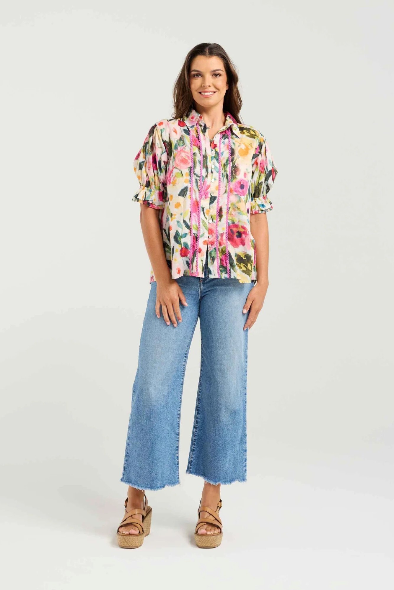 The Bossa Top Prime Rose brings all the joy of summer blooms in one easy statement. A relaxed fit with playful puff sleeves and delicate trim—this top pairs perfectly with denim or linen shorts for an effortless warm-weather look.
