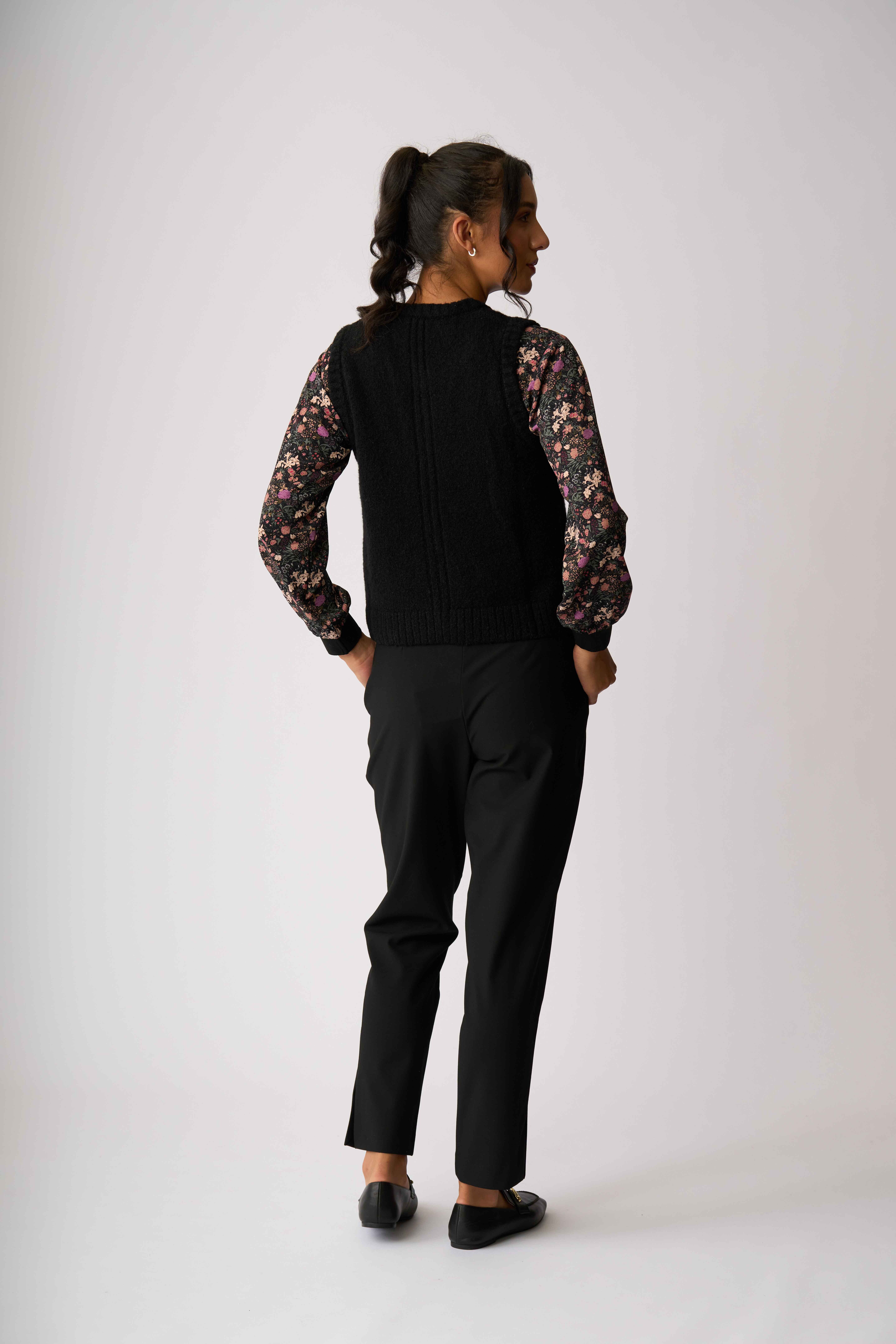 2x2 Rib along the neckline, sleeve, body hem and opening of the pocket