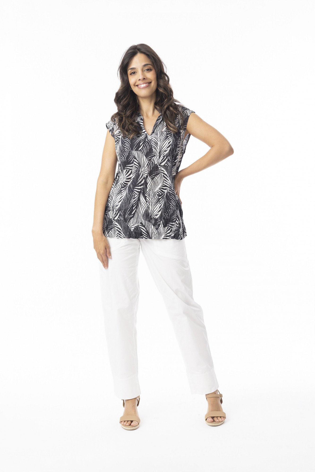Celebrate summer in our elegant garment, the Arashi Collar Cami! This stylish piece features a flattering V-neck, subtle cap sleeves, and a classic collar, all in a vibrant print. Perfect for sunny days and beach holidays, this shirt combines comfort and style, making it an ideal choice for your everyday wardrobe.