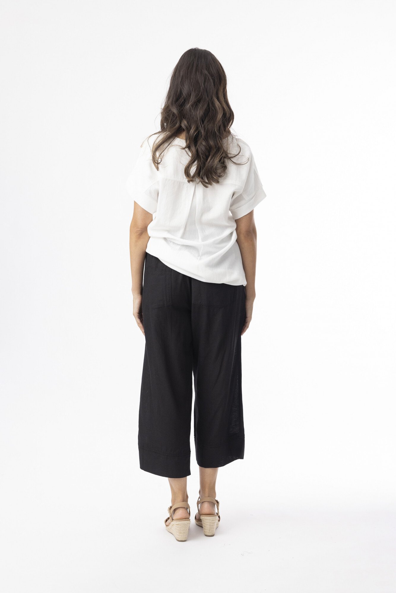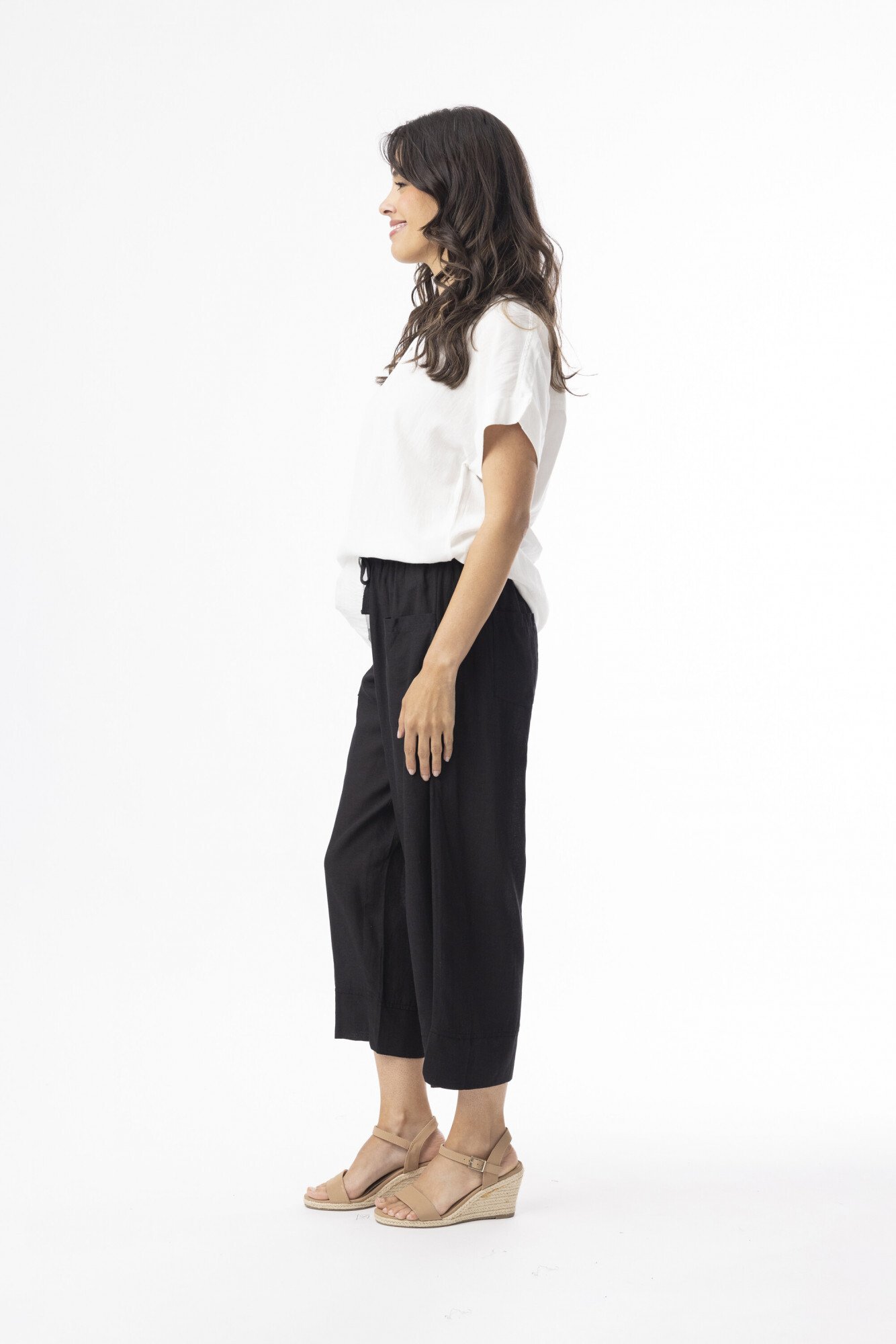 Stay cool and effortlessly chic with our Linen Essentials 3/4 Length Pants. Designed with an elasticated waistband, a functional front tie, and convenient side pockets, these breathable linen pants are made for all-day comfort. The cropped silhouette is finished with a stylish thick hem at the bottom, adding structure and a refined touch. Available in a range of colours to suit every mood and moment.