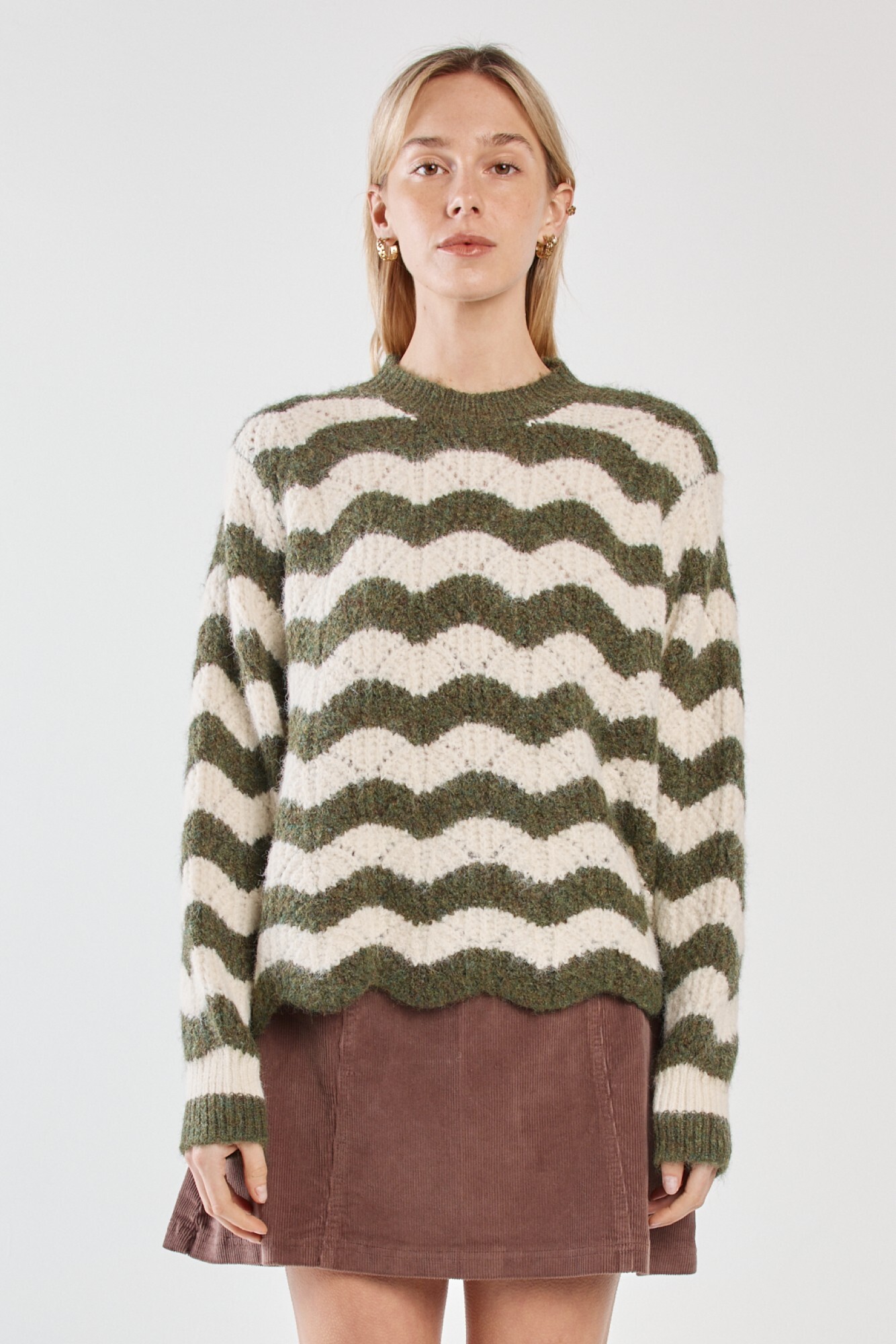 The Nikkita Wavy Stripe Knit brings playful texture to your knit edit. Wavy stripes and scalloped hems feel on-trend yet refined. Rib detailing keeps the look polished while maintaining comfort. An effortless, transeasonal layer with elevated charm.